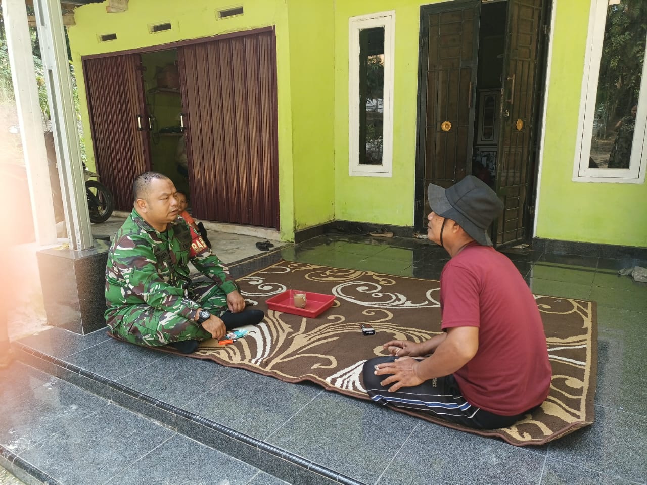 Duduk Diteras Bersama Warga, Babinsa Rumbai Bukit Tekankan Pentingnya Kebersihan.