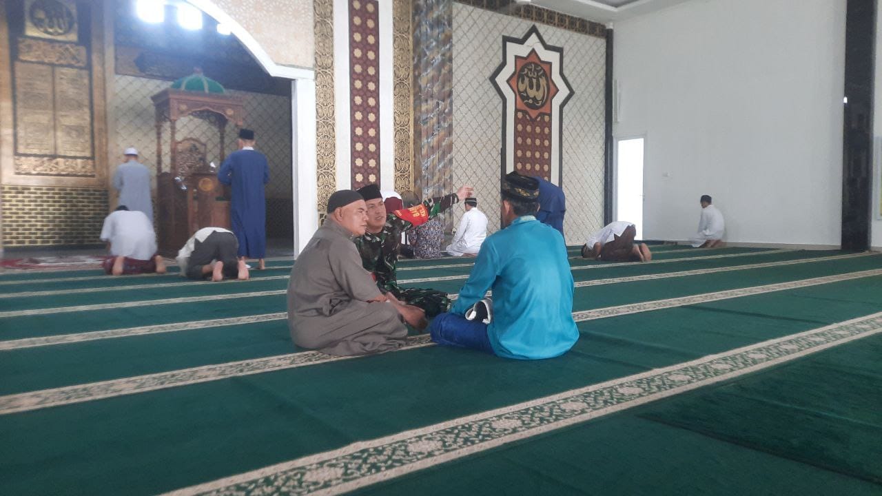 Babinsa Serka Toni Efendi Jalin Keakraban dengan Warga Lewat Komsos di Masjid.