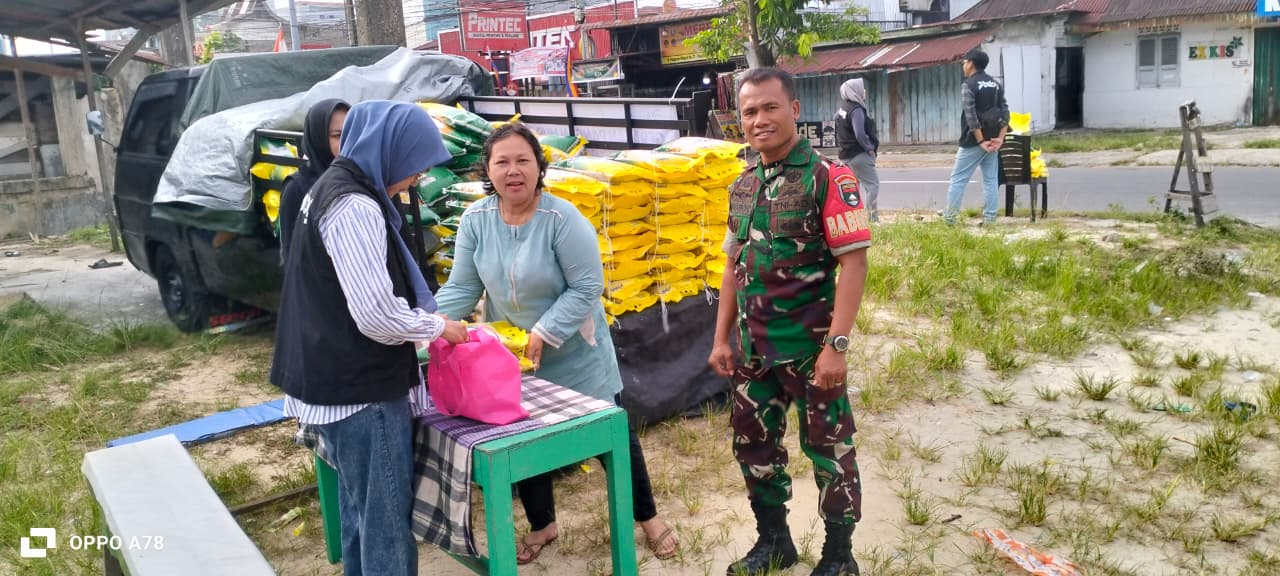 Sinergi Koramil 02/Kota dan Bulog, Ratusan Karung Beras SPHP Membantu Ekonomi Masyarakat Kota.