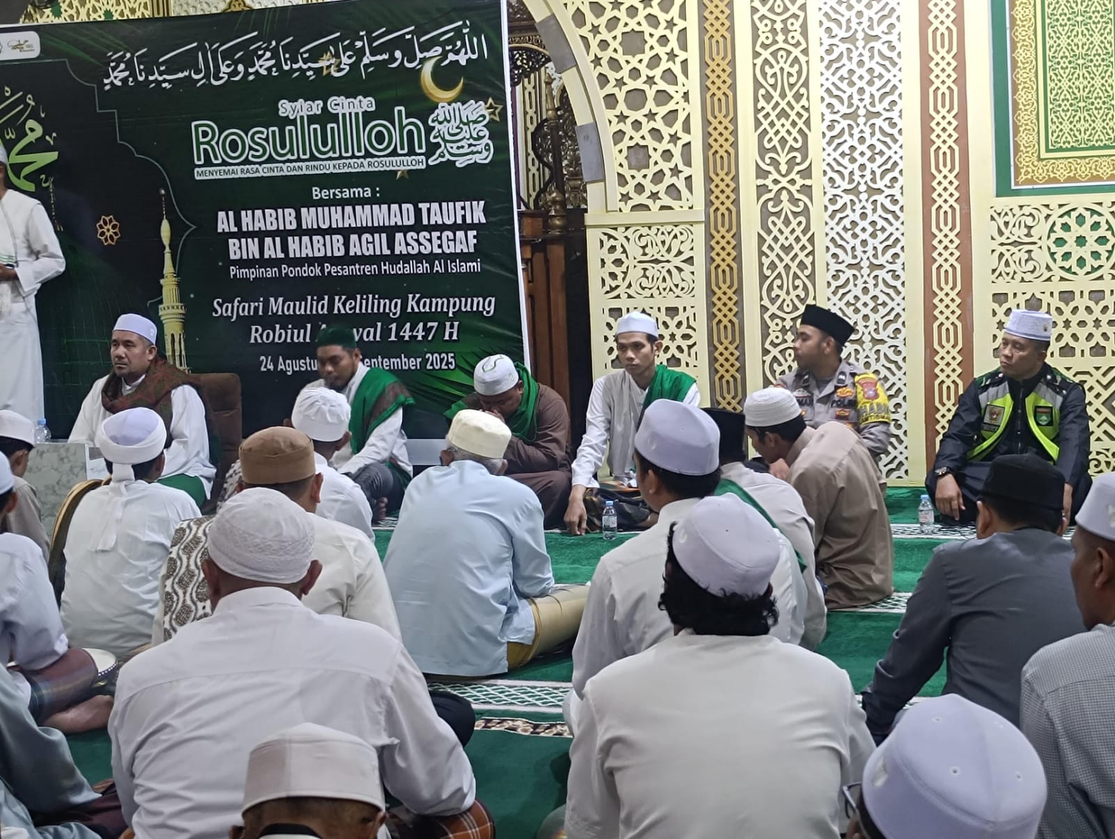 Babinsa Serma Misbahudin Hadiri Peringatan Maulid Nabi Muhammad SAW di Masjid Paripurna Al Huda Tobek.