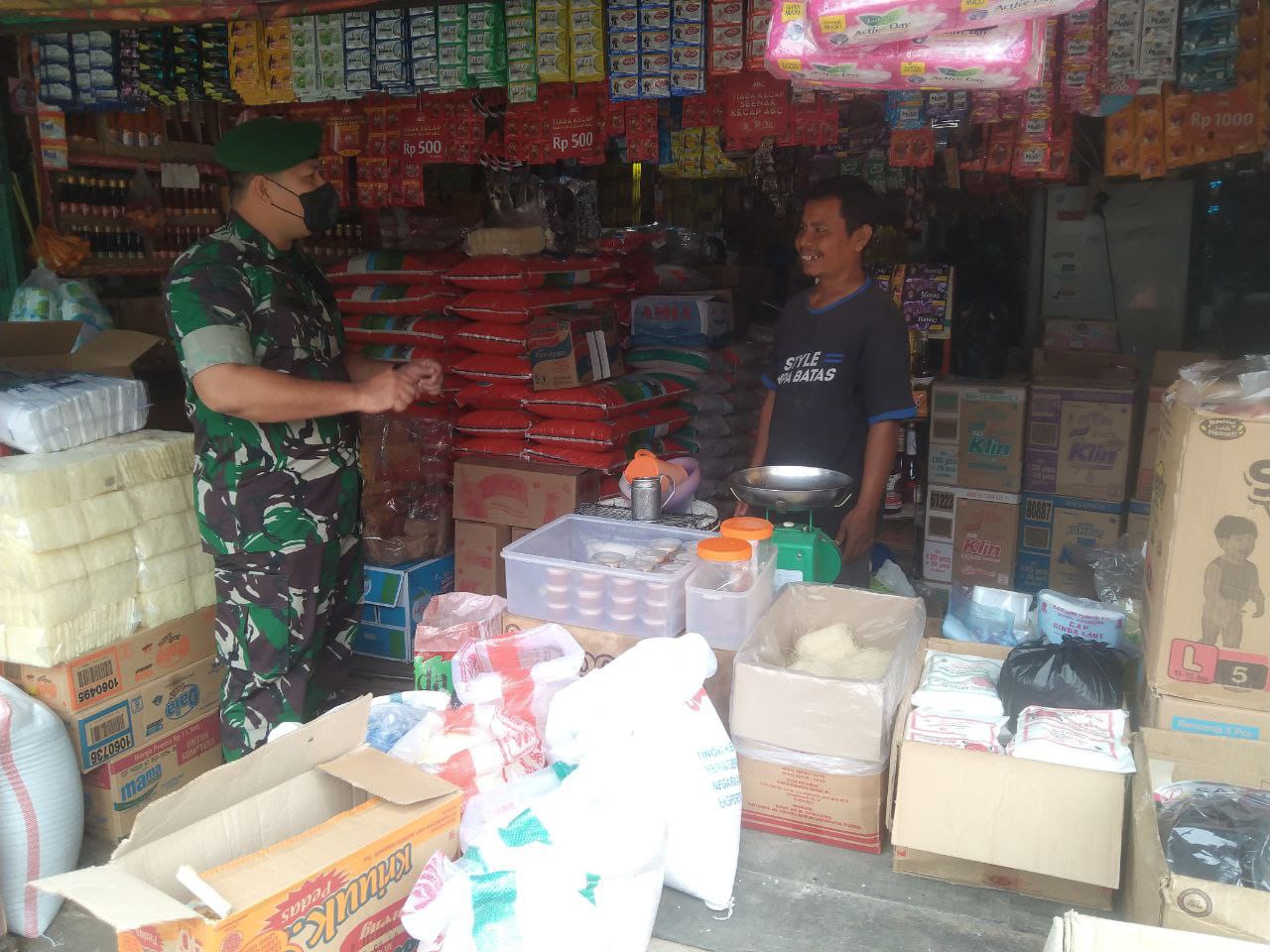 Selasa pagi, (22/11/2022), Babinsa Koramil 06/Sukajadi Kodim 0301/PBR, Serda J H Pasaribu melaksanakan penegakan disiplin dan mematuhi Protokol kesehatan (Prokes) di Pasar Cik Puan Jalan Kesuma Kelurahan Jadirejo Kecamatan Sukajadi.