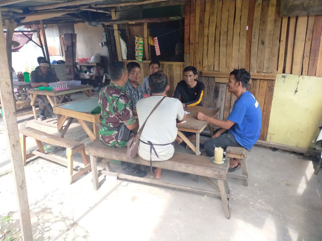 Serka Adeng bertugas di Satuan Koramil 06/Sukajadi Kodim 0301/PBR melaksanakan komsos bersama Ketua RT 03 Solehudin dan warga di warung kopi Jalan Kasuari RT 01 RW 09 Kelurahan Kampung Melayu Kecamatan Sukajadi, Senin.