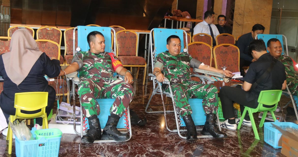 Personel Kodim 0301/Pekanbaru Ikuti Donor Darah, Anniversary ke-13 Grand Central Hotel.