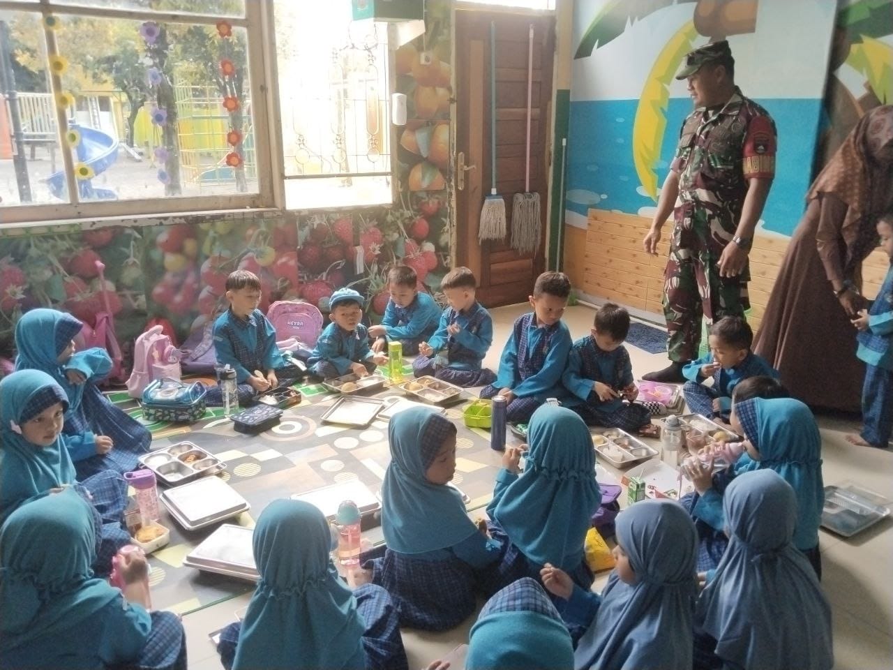 Momen Hangat Babinsa Sertu Parjo Bagikan Makanan Bergizi untuk Murid TK An Namiroh.