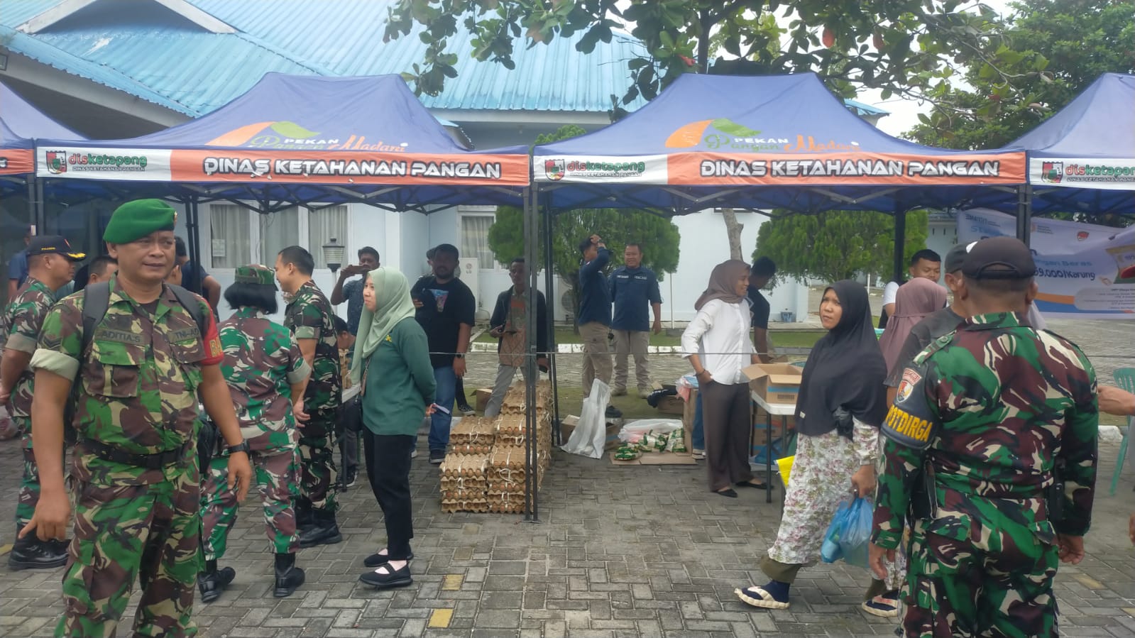 Babinsa Sertu Aditya hingga Bhabinkamtibmas Pantau Pasar Murah di Maharatu, Warga Antusias Belanja Kebutuhan.
