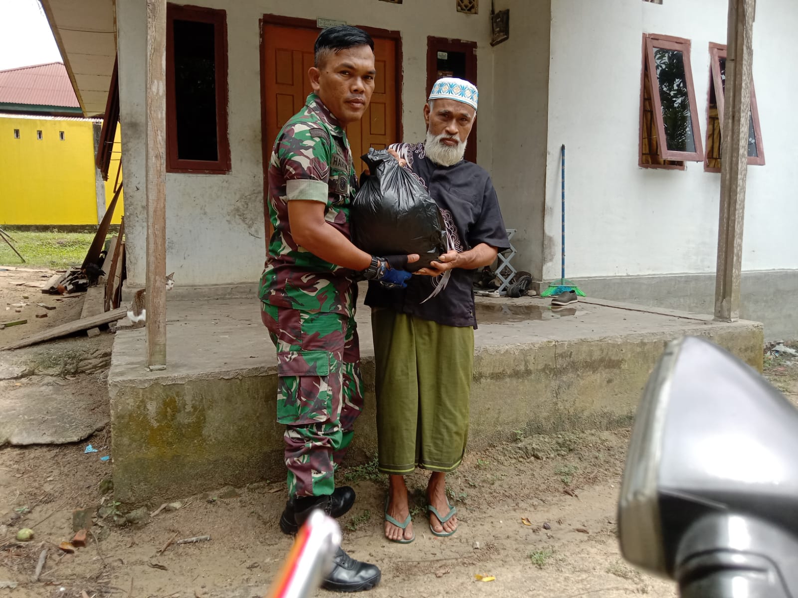 Wujud Kepedulian, Babinsa Serda Harfan Salurkan Bantuan Sembako untuk Warga.