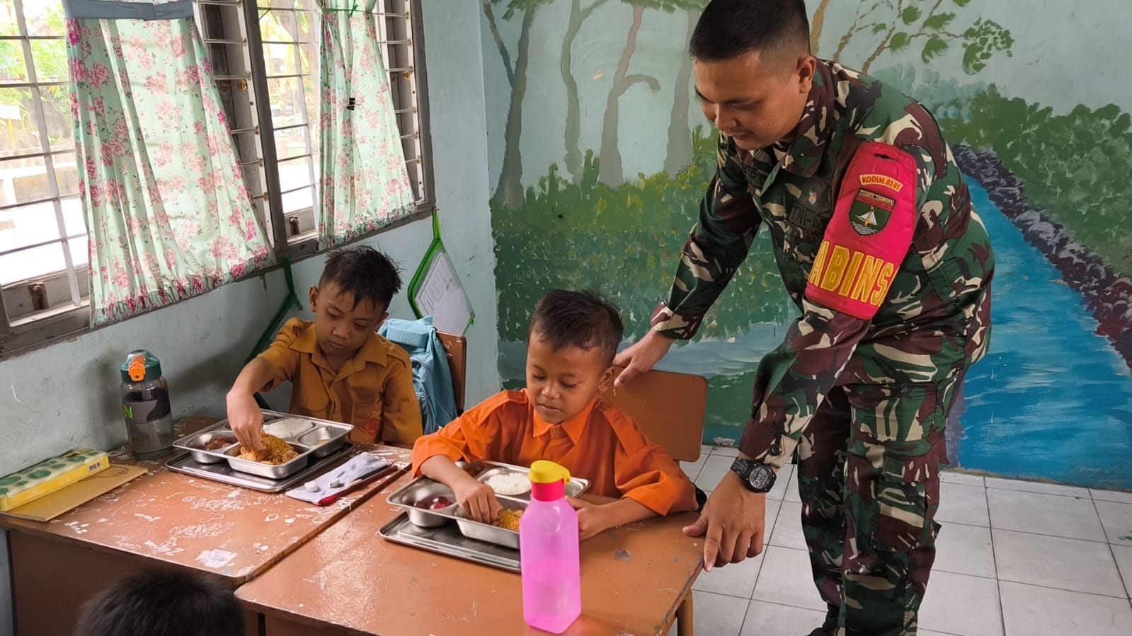 Sinergi TNI dan Sekolah, Makanan Bergizi Gratis Dirasakan oleh Anak-anak SDN 100.