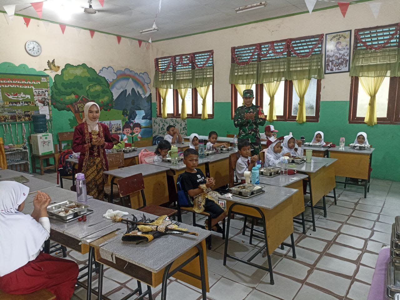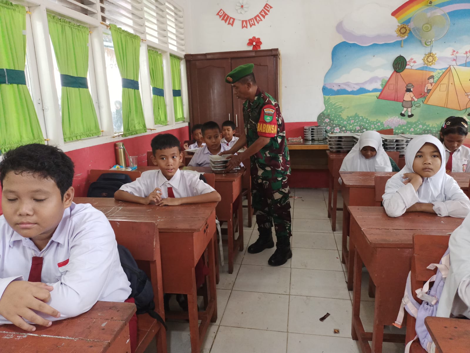 Serma J Tanjung Dampingi Pembagian Makan Bergizi Gratis di SD Wilayah Sidomulyo.