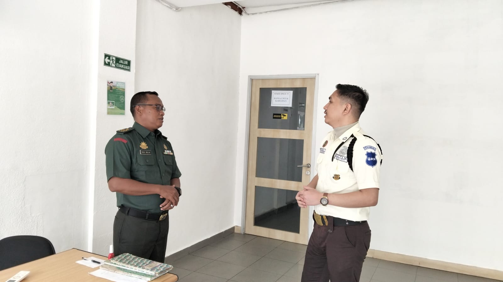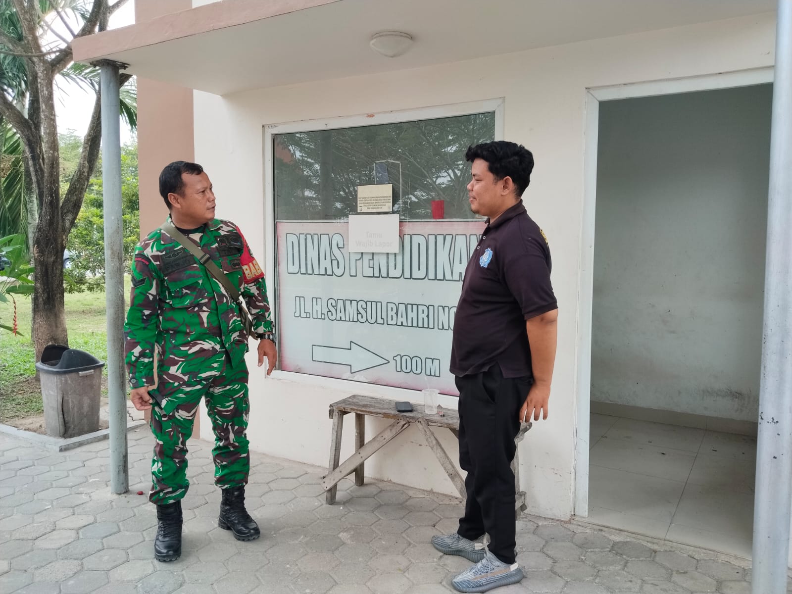 Babinsa Sertu Parjo Sambangi Satpam Dinas Pendidikan, Perkuat Sinergi Keamanan dan Sampaikan Kamtibmas.