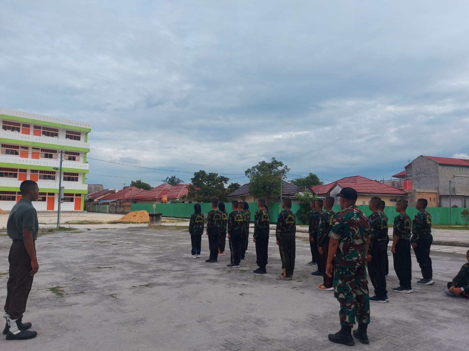Puluhan Taruna Taruni SMK Taruna Satria Pekanbaru Diajari Latihan PBB dari Serka.