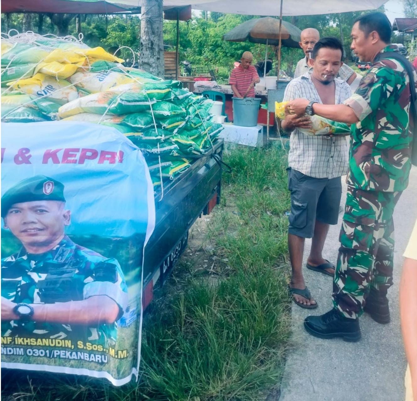 Babinsa Kodim 0301/Pbr Kawal Gerakan Pangan Murah di Tangkerang Utara, Warga Antusias Dapatkan Sembako.