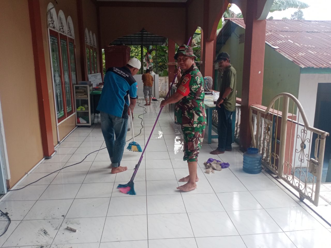Gotong Royong Jumat Bersih, Babinsa Serda Sukiran dan Warga Tuah Karya Kompak Rawat.