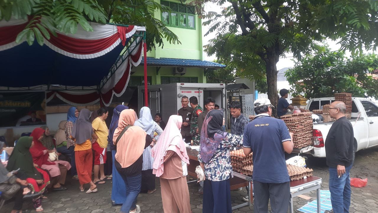 Babinsa Serka Toni Efendi Monitor Kegiatan Pasar Murah di Kelurahan.