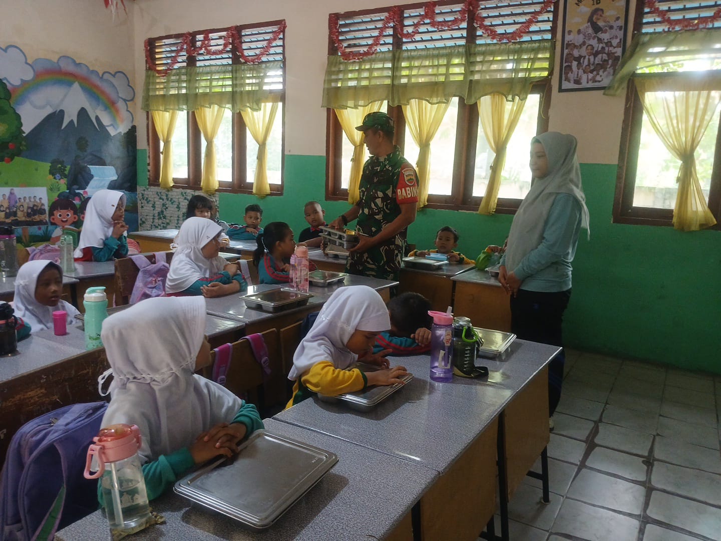Kebersamaan Babinsa Serka Noviandi dan Siswa, Santap Makanan Bergizi di Jam.
