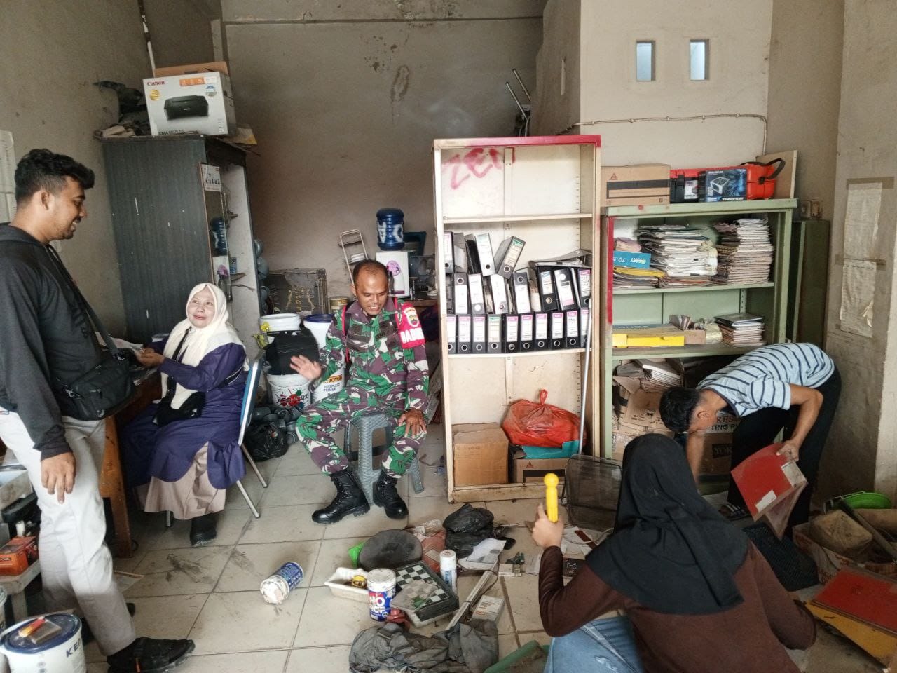 Babinsa Serda Tulus H Batuara Bantu Pegawai Honor Bersihkan Gudang Kantor Lurah Kampung.