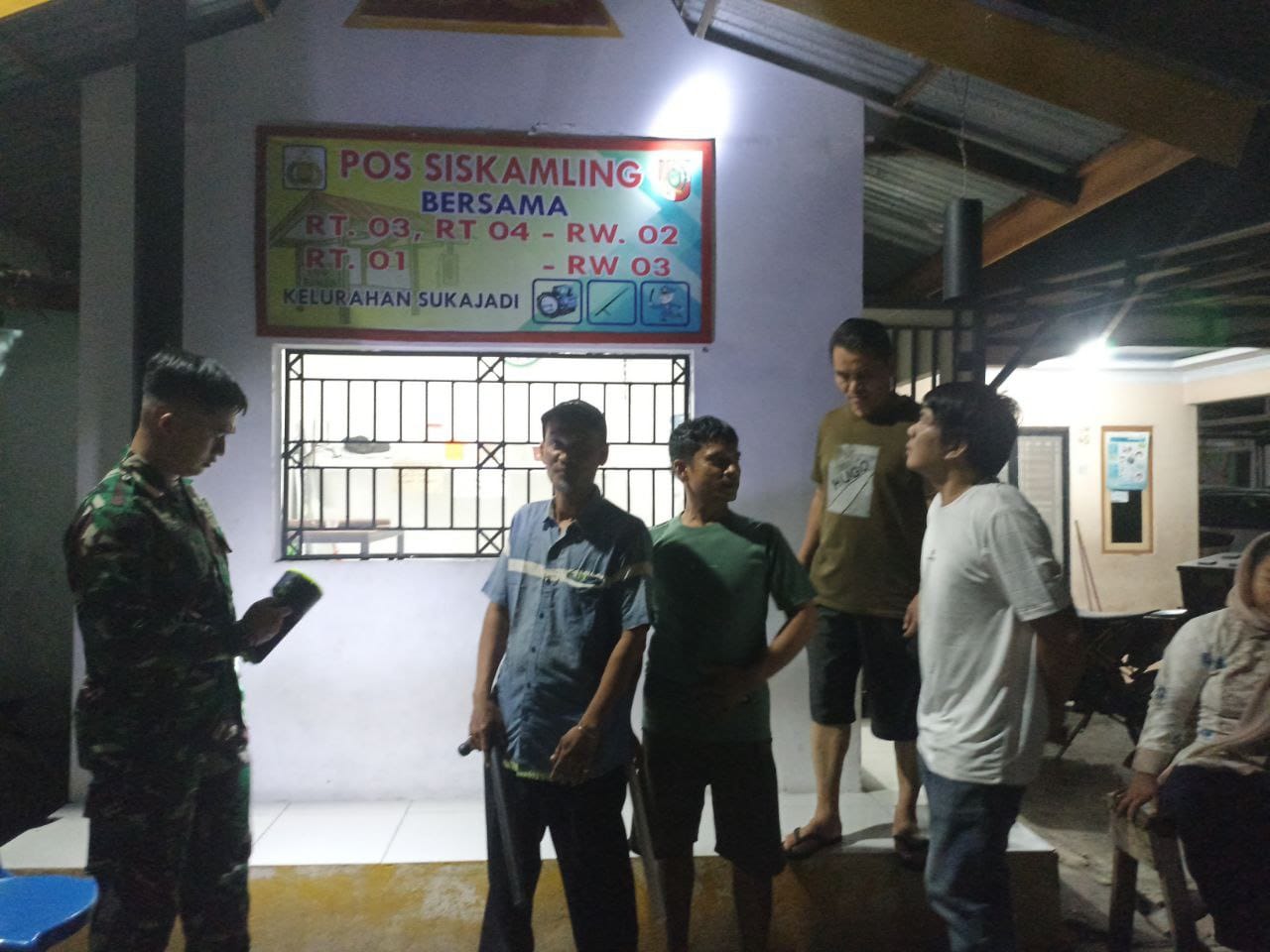 Pererat Silaturahmi dan Keamanan Lingkungan, Babinsa Sukajadi Turun Langsung Dampingi Warga Ronda.