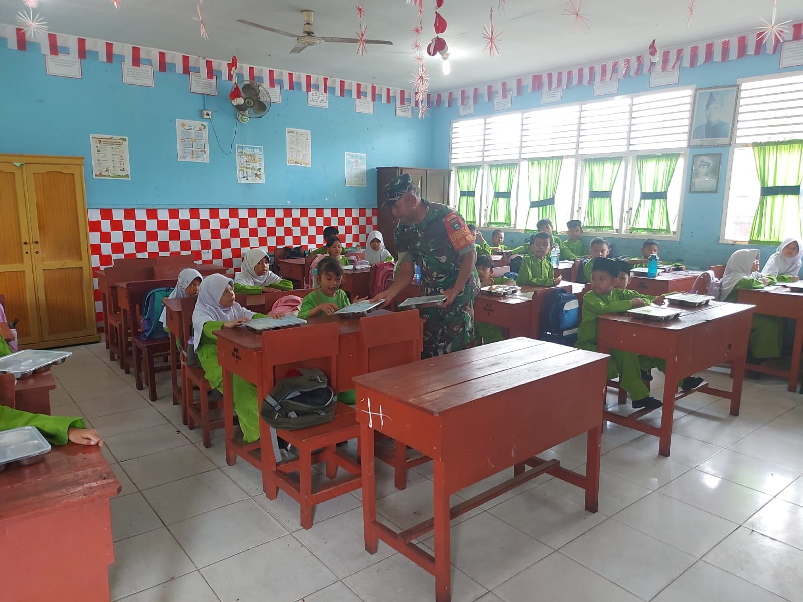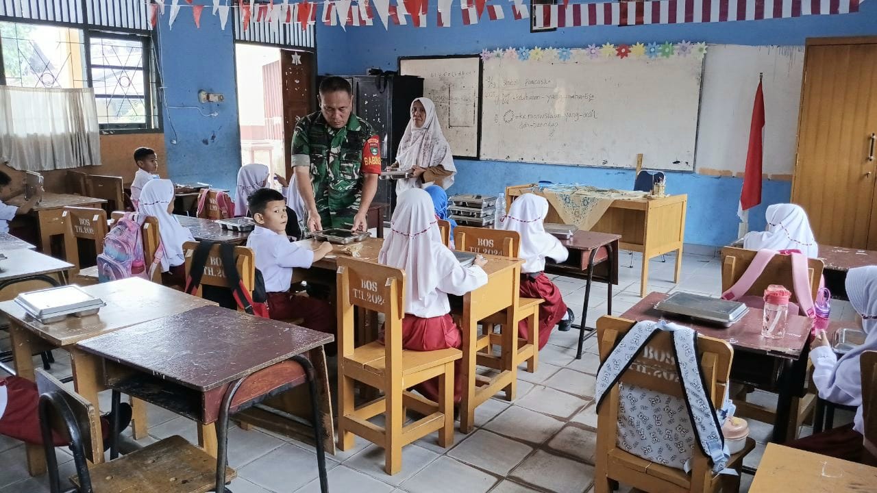 Babinsa Sertu Jhoni Janan Bagikan Makanan Bergizi untuk Murid SDN 13 Pekanbaru, Wujud Kepedulian terhadap Generasi.