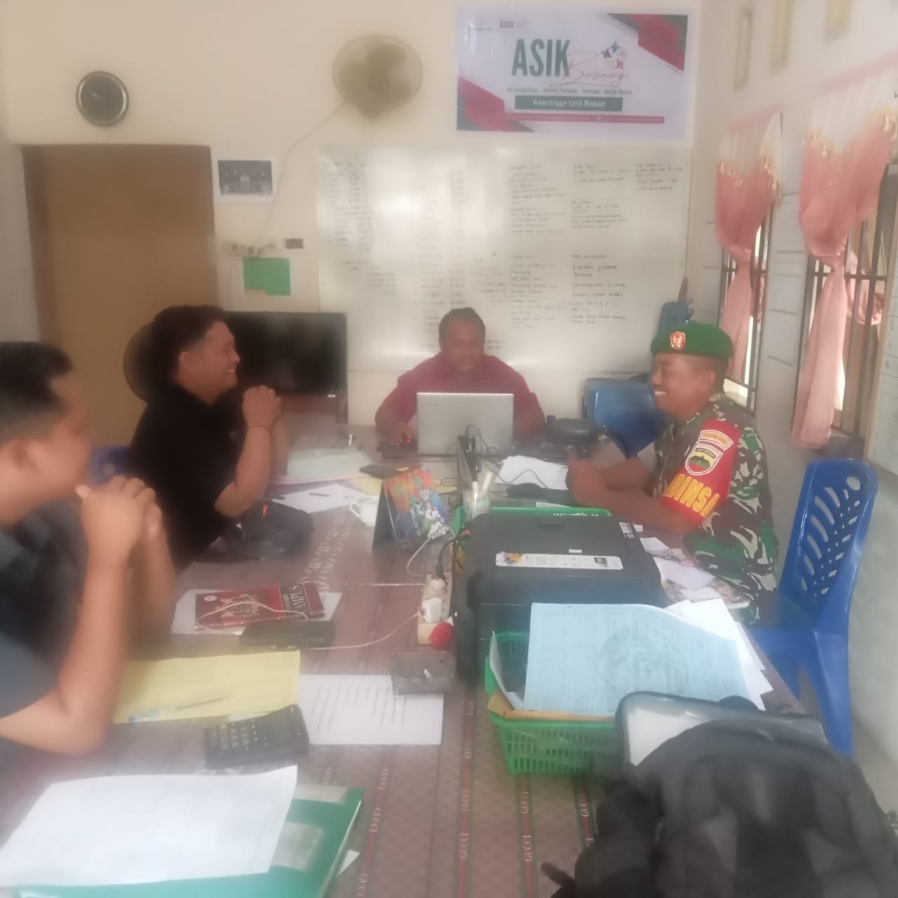 Perkuat Sinergi Wilayah, Babinsa Serda Beni Laksanakan Komsos di Kantor Lurah.