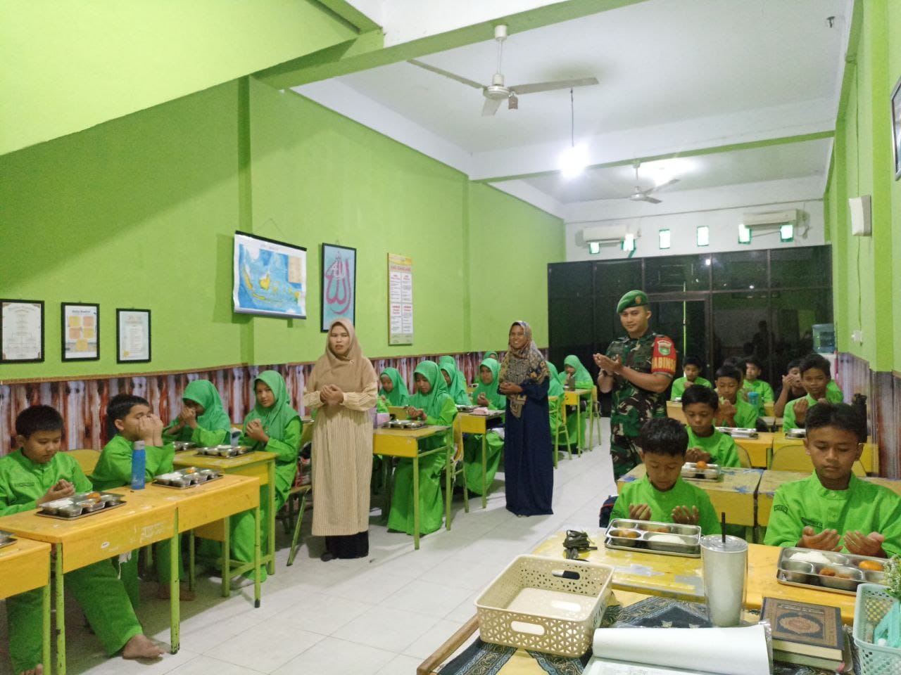 Sertu Sutan Siregar Bagikan Makanan Sehat ke SDN Annamiroh. Anak Murid: “Terima Kasih, Bapak.