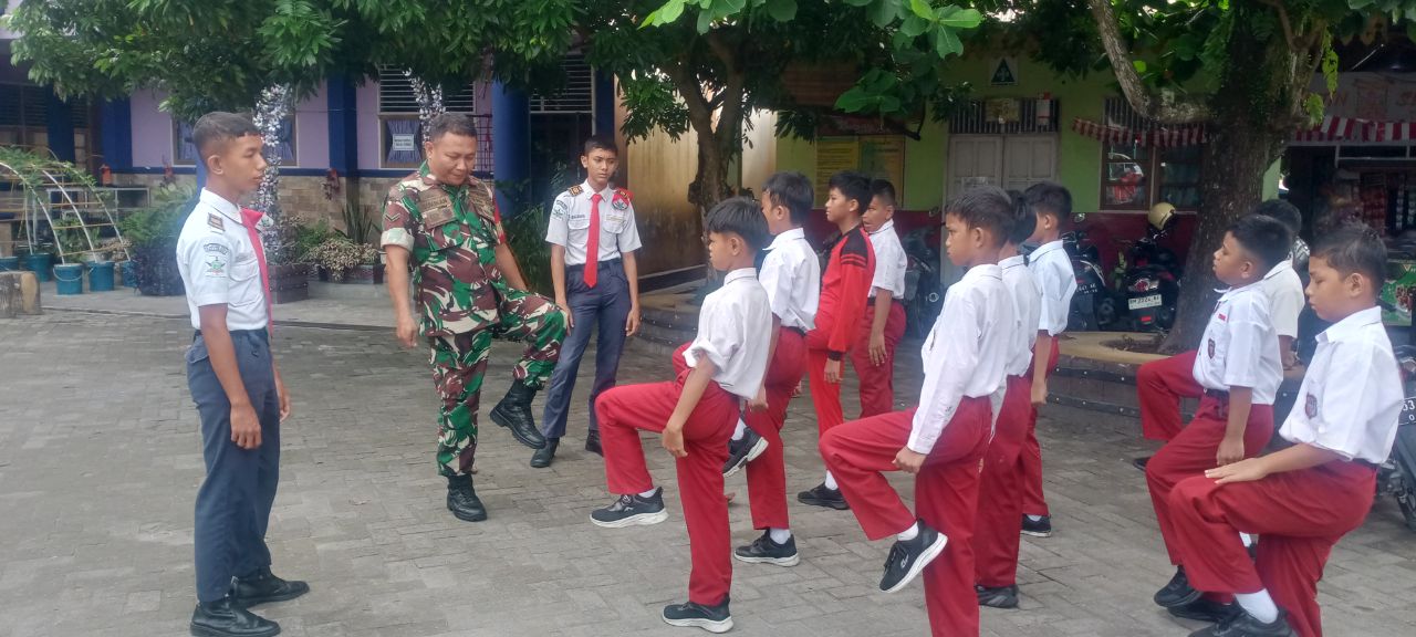 Babinsa Serda Sukiran Latih Siswa SDN 35 Pekanbaru, Tanamkan Disiplin dan Semangat Kebangsaan Sejak.