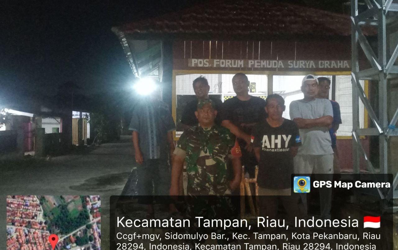 Patroli Malam Sertu Arman di Pos Kamling Sialang Munggu, Wujud Kepedulian TNI Jaga Keamanan.