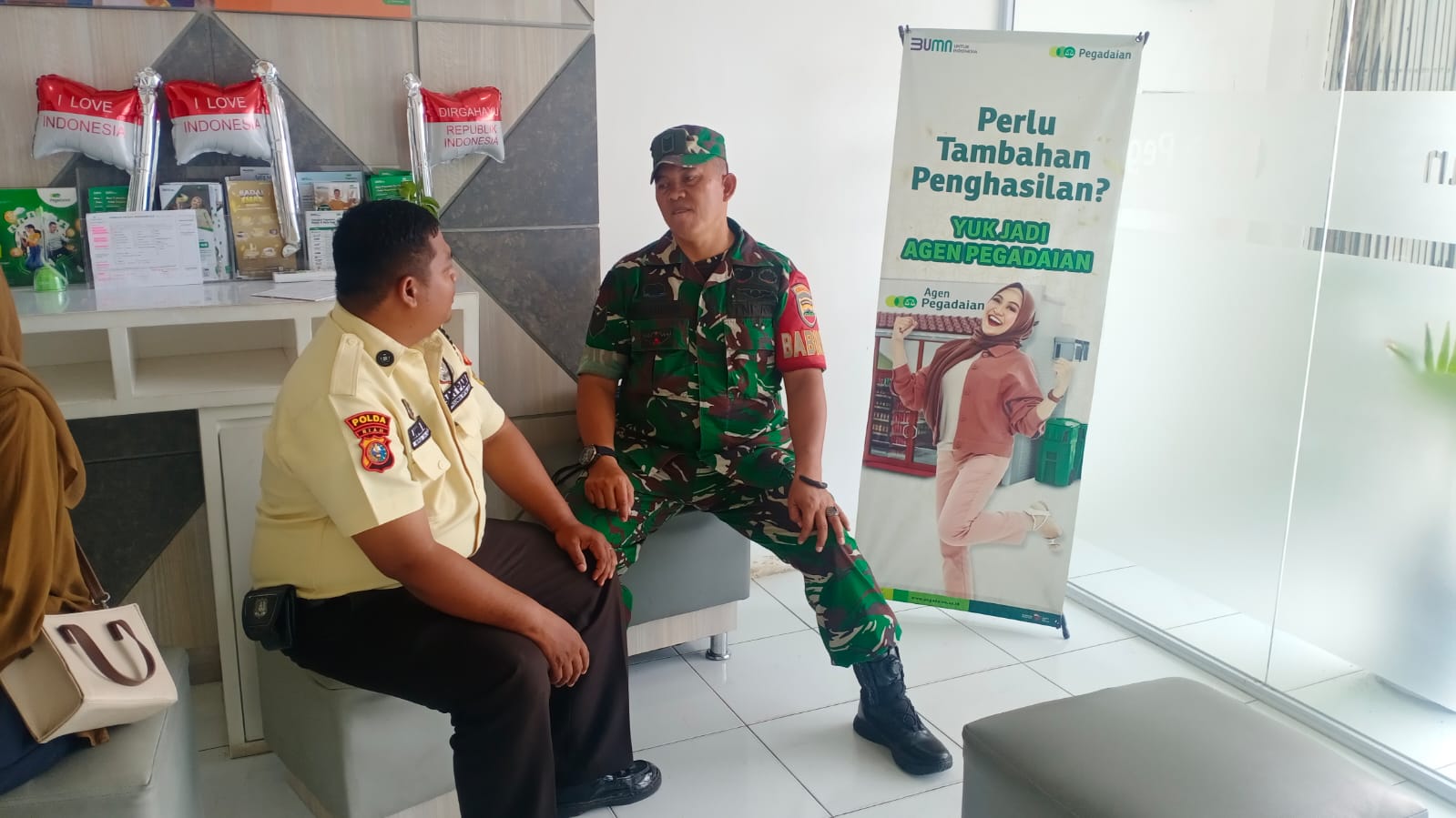 Babinsa Serma Misbahudin Jalin Komunikasi Sosial dengan Petugas Keamanan di Kantor.