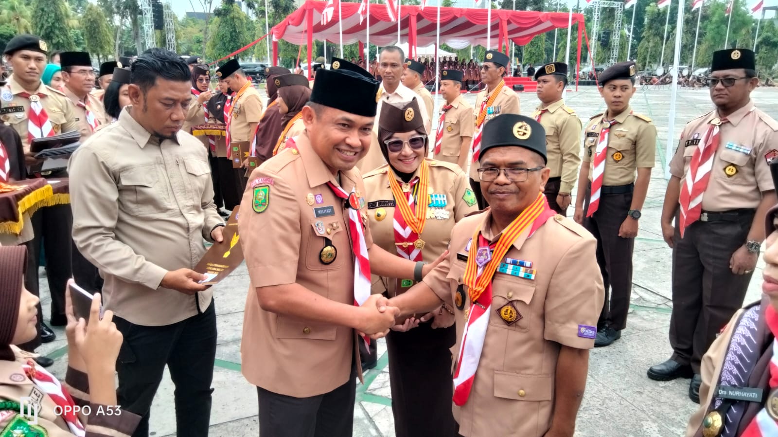 Wakili Danrem, Kasdim 0301/Pbr Hadiri Upacara Peringatan Hari Pramuka ke-64 Tingkat Provinsi.