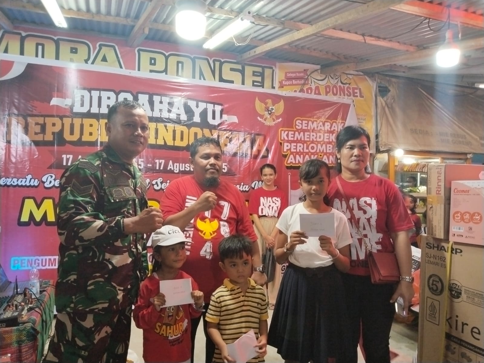 Babinsa Sertu Parjo Ikut Meriahkan Perayaan HUT RI ke-80 dengan Pembagian Hadiah Perlombaan di Sungai.