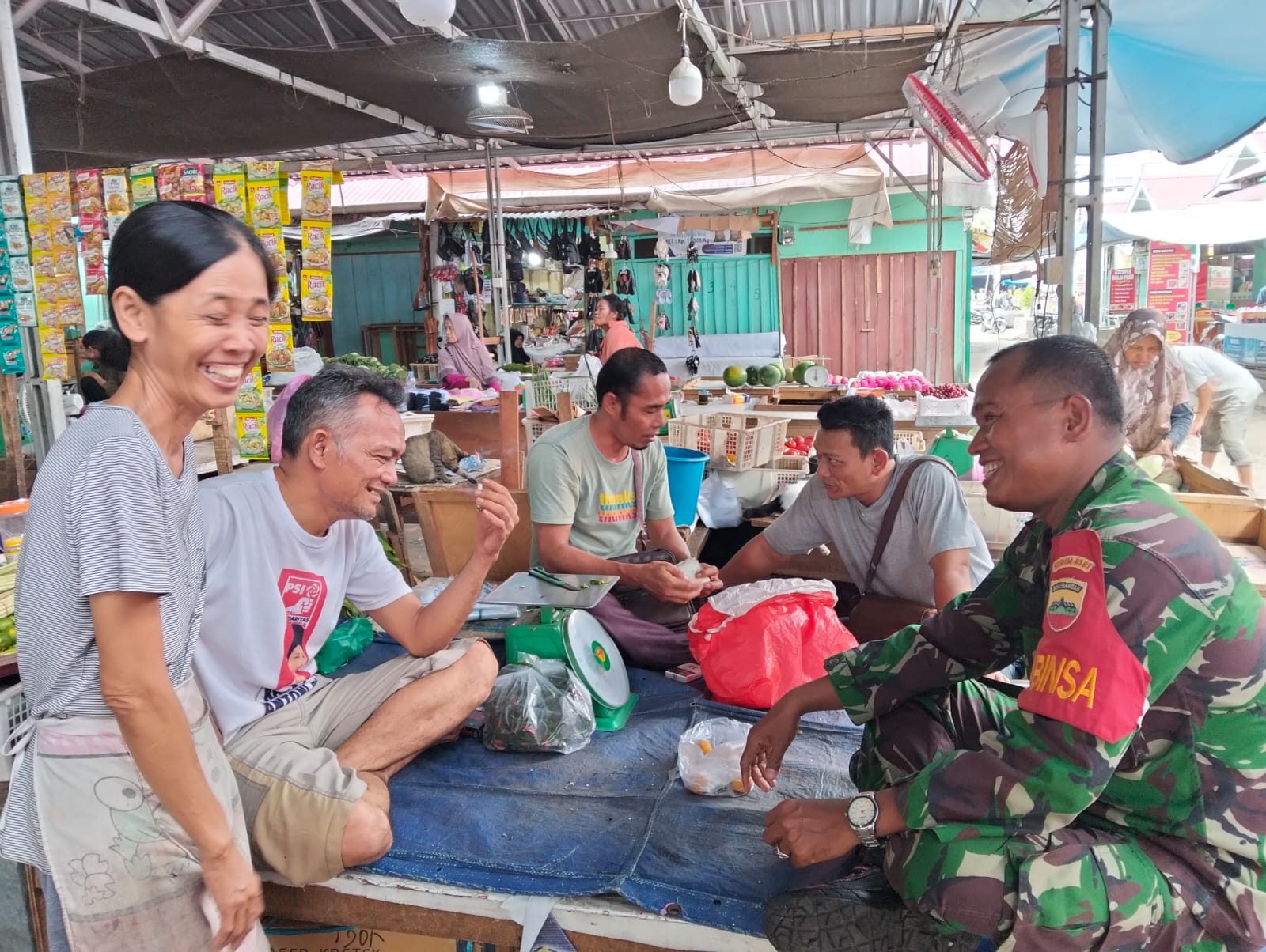 Babinsa Serma Budi Mulia Komsos dengan Pedagang, Ciptakan Suasana Akrab di Pasar Cik.