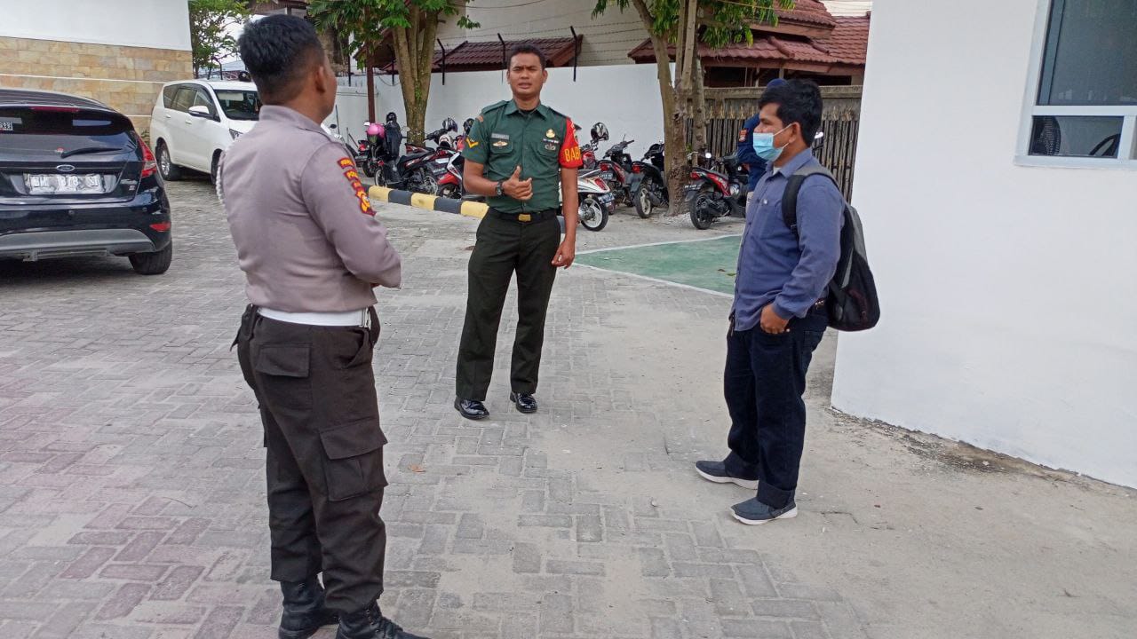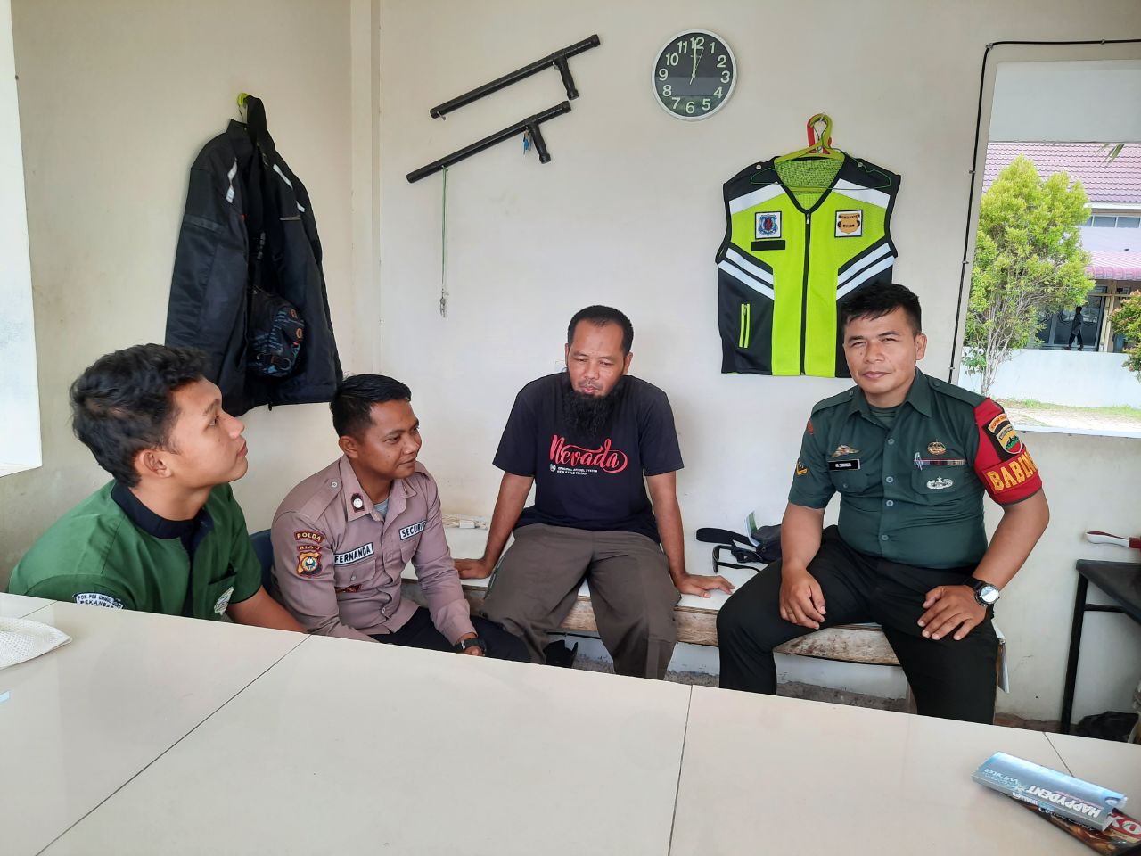 Kedatangan Babinsa Koramil 06/Sukajadi Kodim 0301/Pekanbaru, Serda Yasir Anhar disambut oleh Satpam Politeknik Kesehatan Kemenkes Provinsi Riau Jalan Melur Kelurahan Harjosari Kecamatan Sukajadi, Senin.