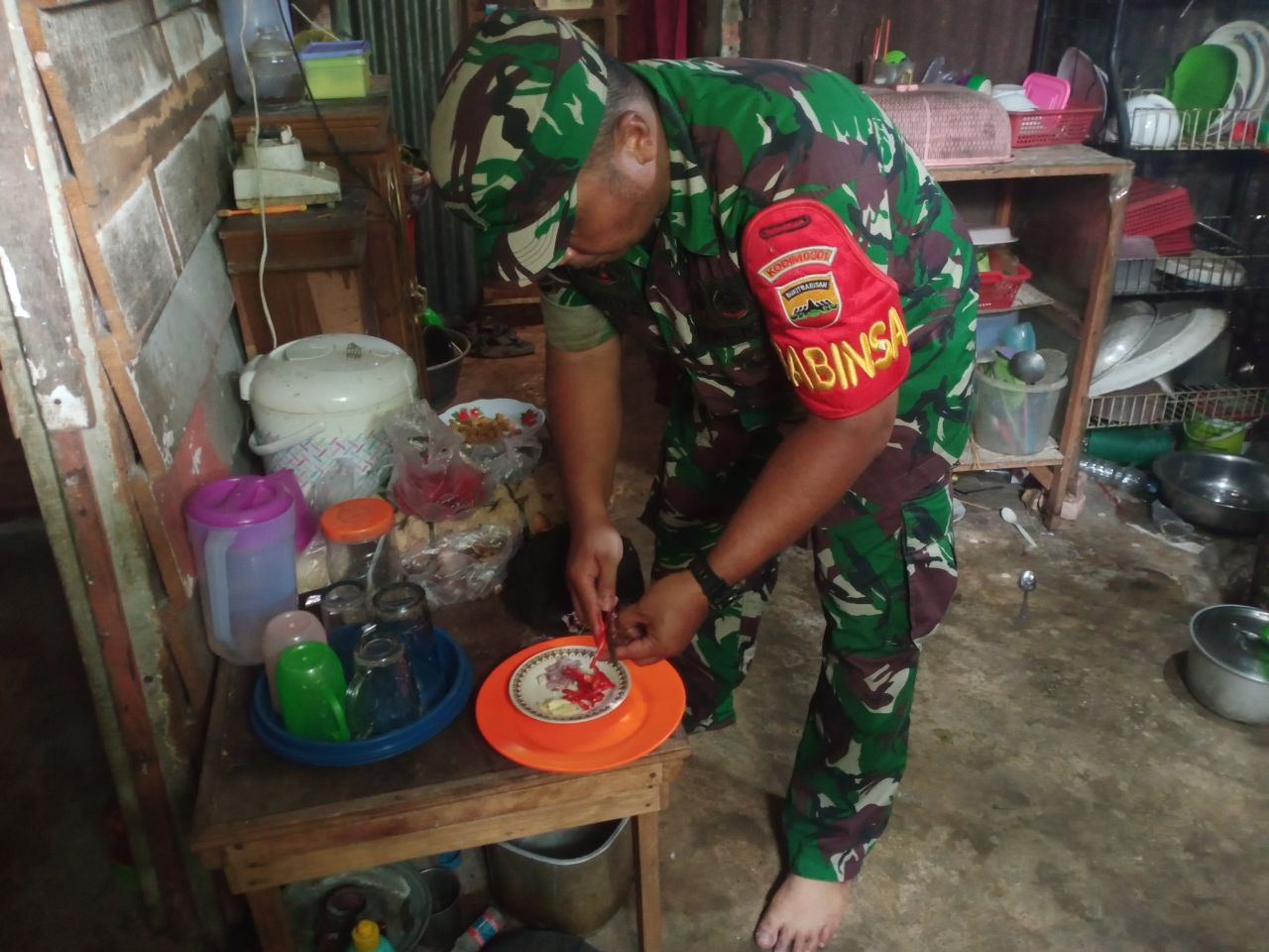 Wujud Kepedulian, Babinsa Simpang Baru Memasak Untuk Warga Jalan.