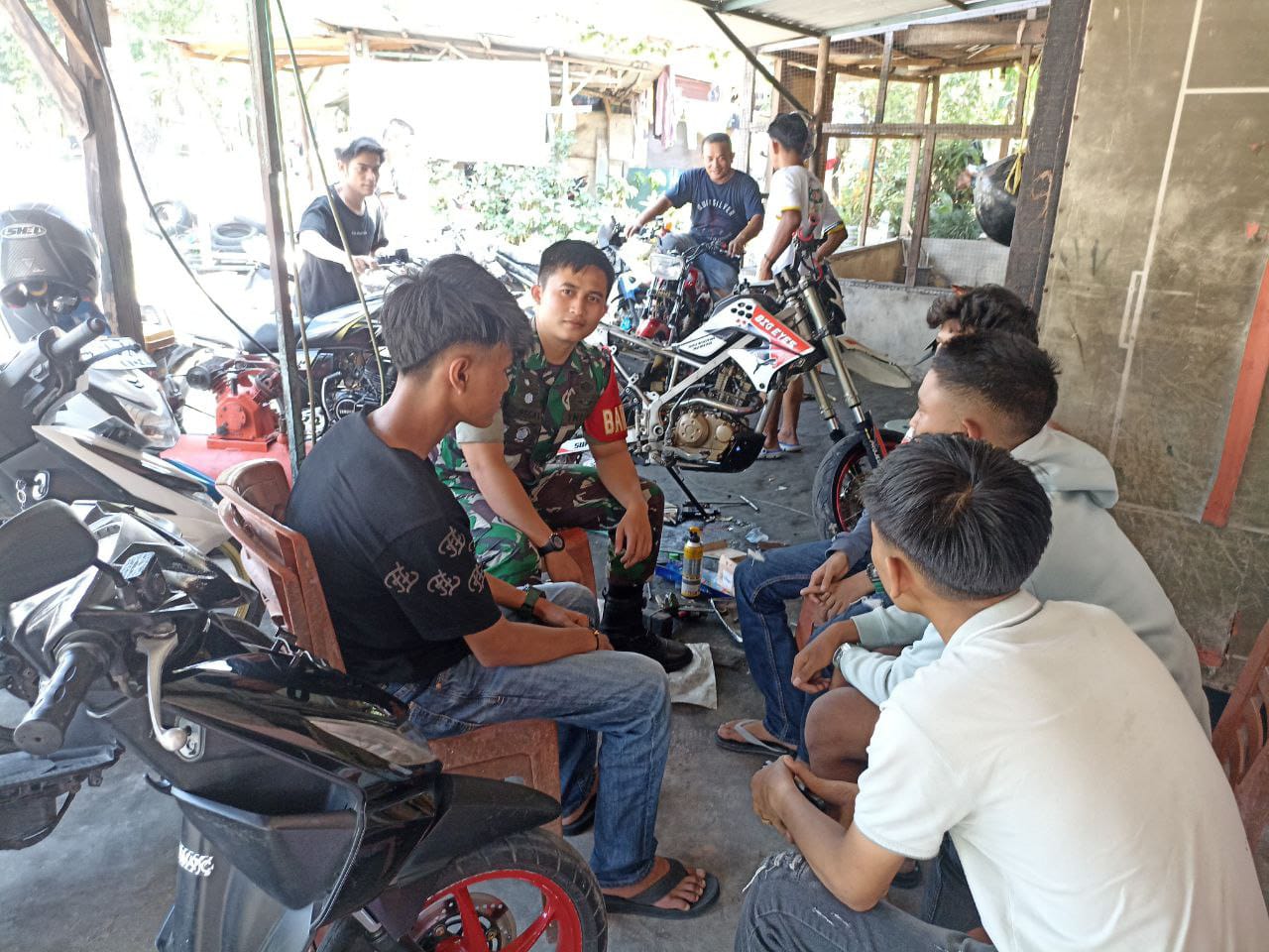 Babinsa Serka Kusman Darmanto melaksanakan Komsos dengan Pemuda setempat Jalan Lili Kelurahan Kedung Sari Kecamatan Sukajadi Kota Pekanbaru, Rabu.