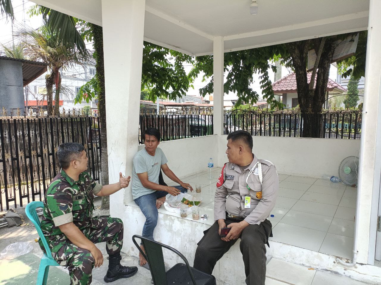 Sertu Jhoni Janan Komsos dengan Satpam Gereja Bahas Keamanan Selama Jemaat.