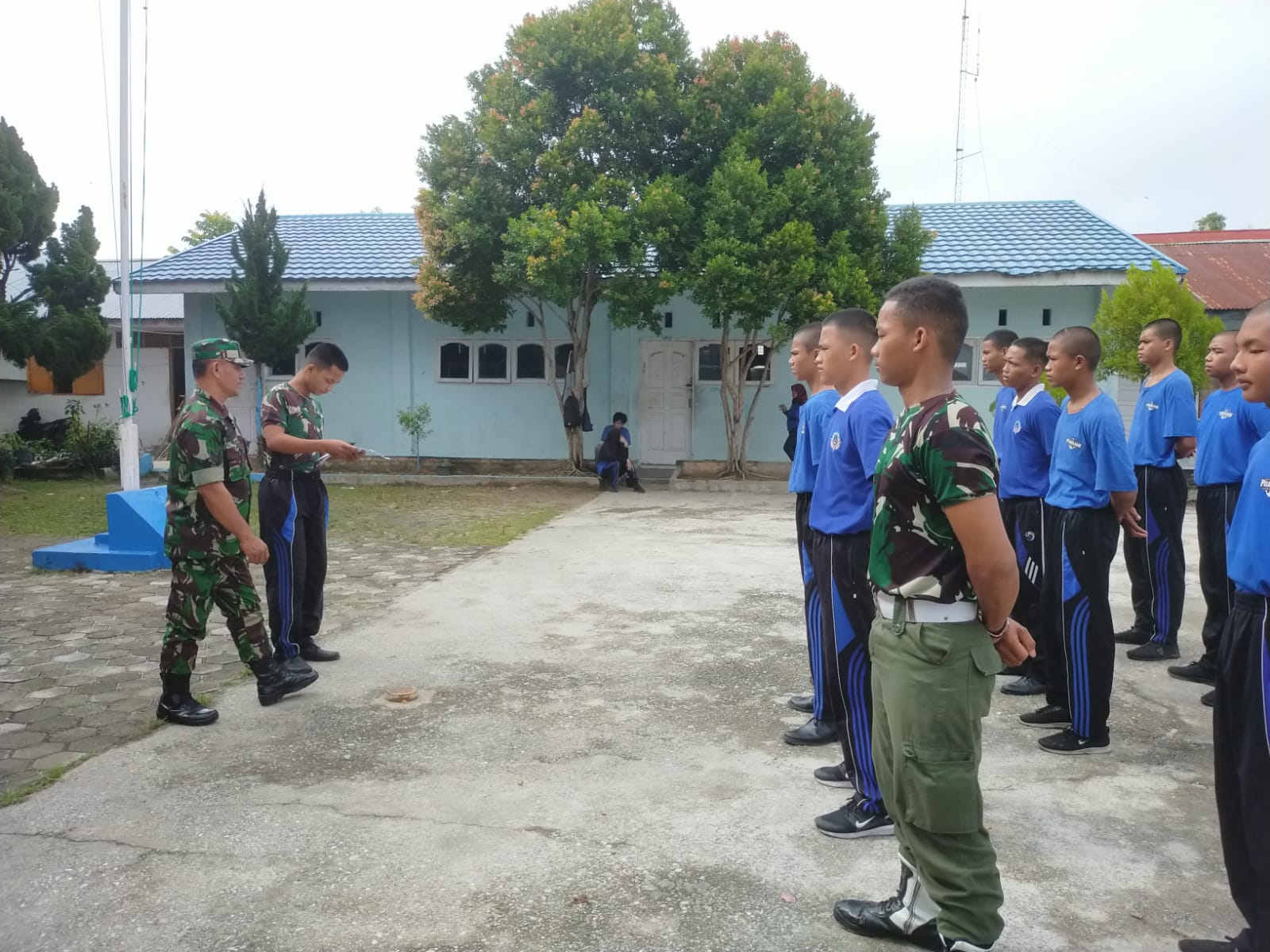 Tumbuhkan Sikap Tegas dan Disiplin, Babinsa Latih PBB Kepada Pelajar SMK Taruna.