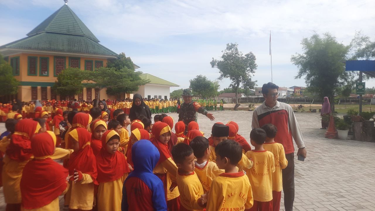 Sehari Menjelang HUT RI ke-80, Babinsa Serka Toni Efendi Intensif Latih Baris-Berbaris Siswa Yayasan Al.