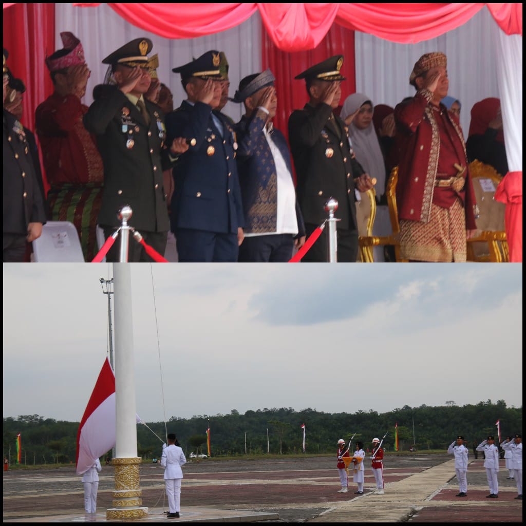 Dandim 0301/Pbr Hadiri Upacara Penurunan Bendera Merah Putih Peringatan HUT ke-80.