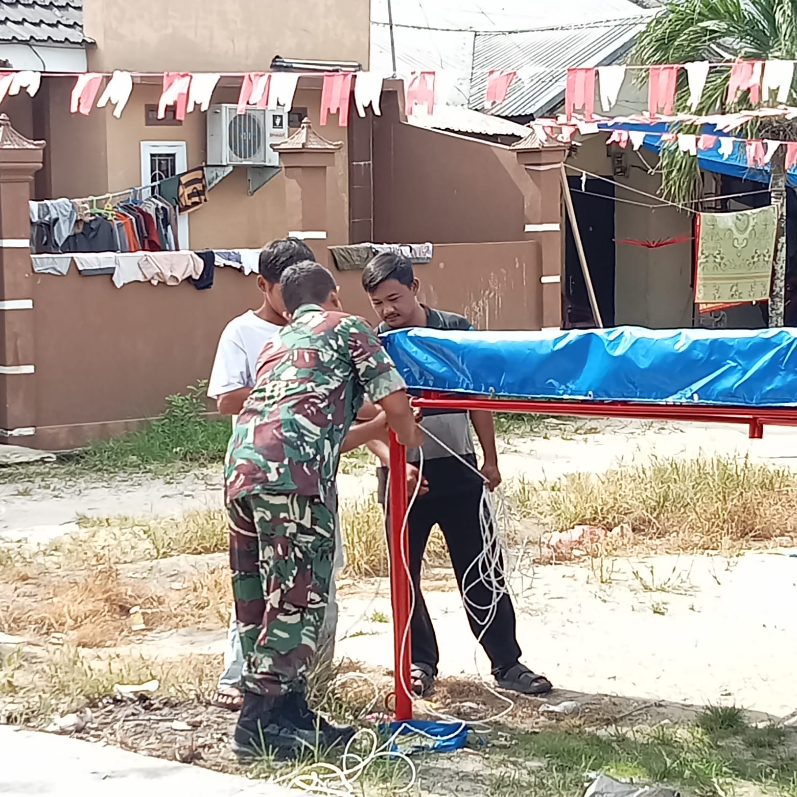 Babinsa Serda Beni dan Warga Kompak Gotong Royong Persiapkan Lomba 17.