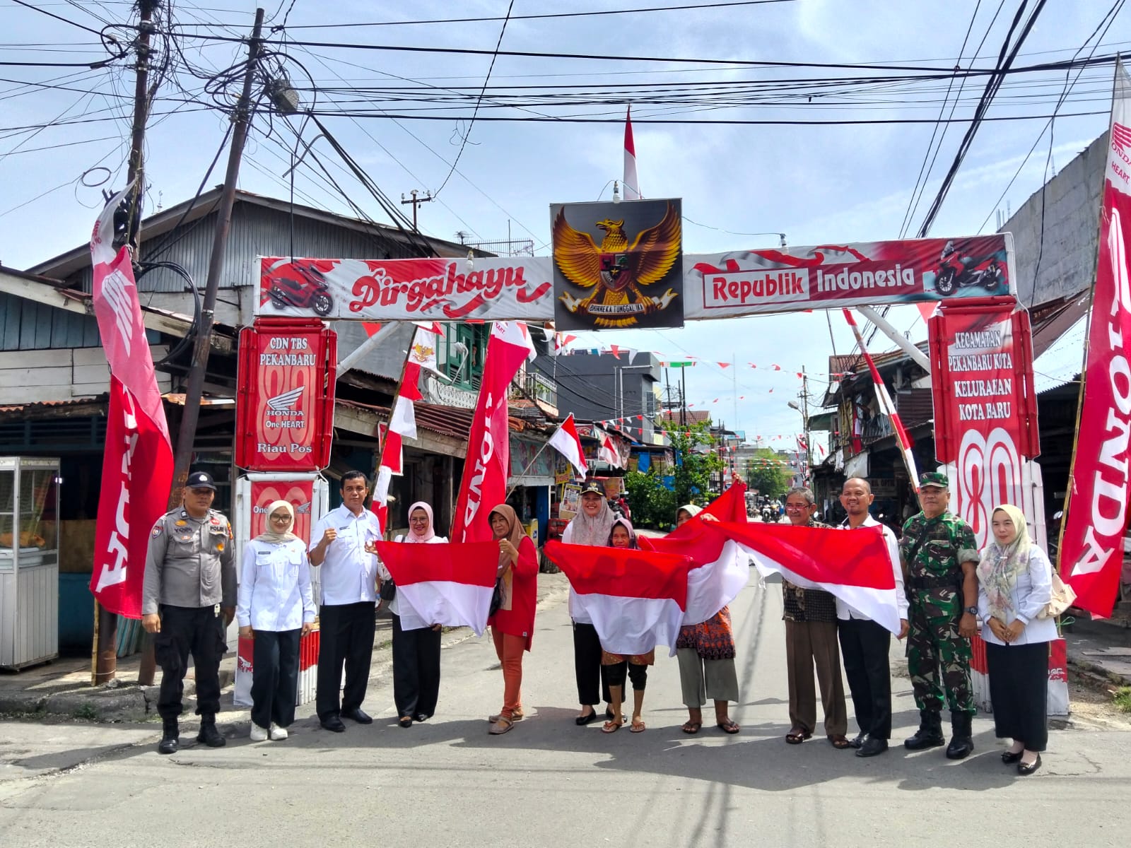 Sertu Riko Hidayat dan Aparat Kelurahan Tangkerang Barat Bersinergi Memeriahkan Dirgahayu RI ke-80 dengan Pembagian.