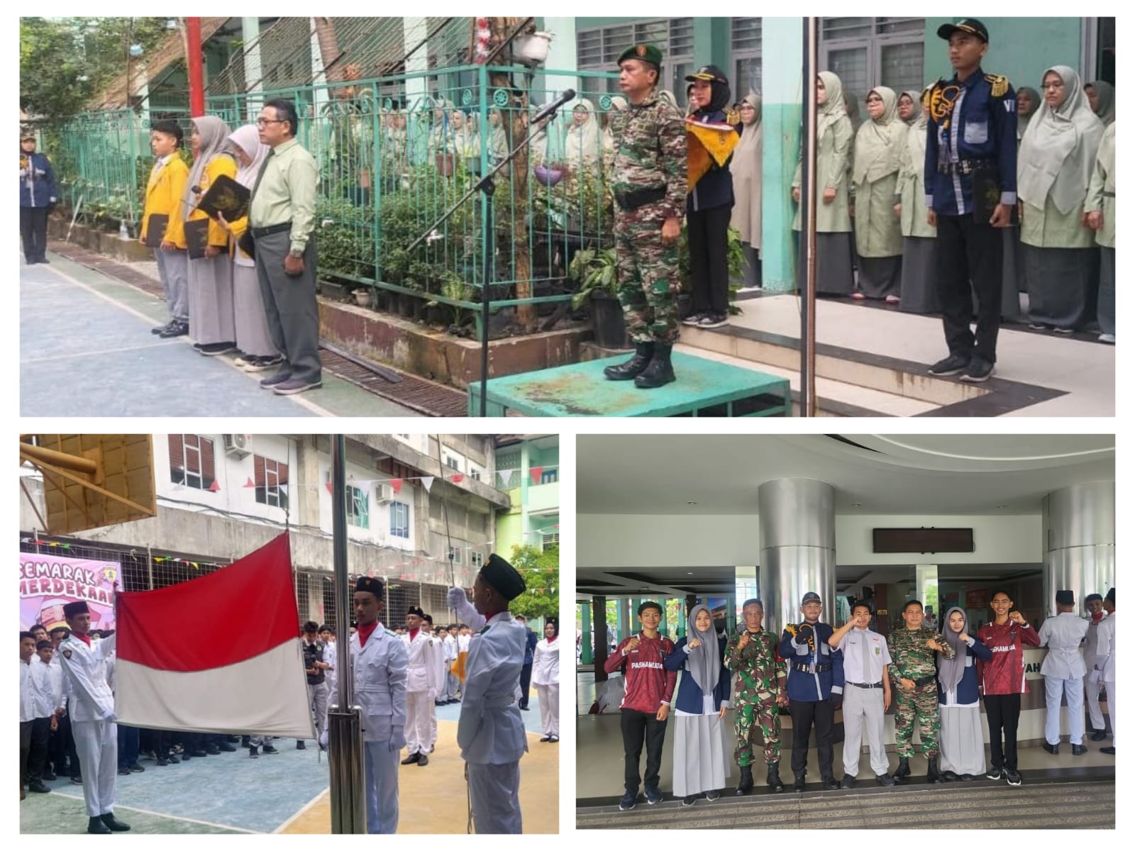 Babinsa Serda Asep Monitor Upacara HUT RI ke-80 di SMK Muhammadiyah 2.