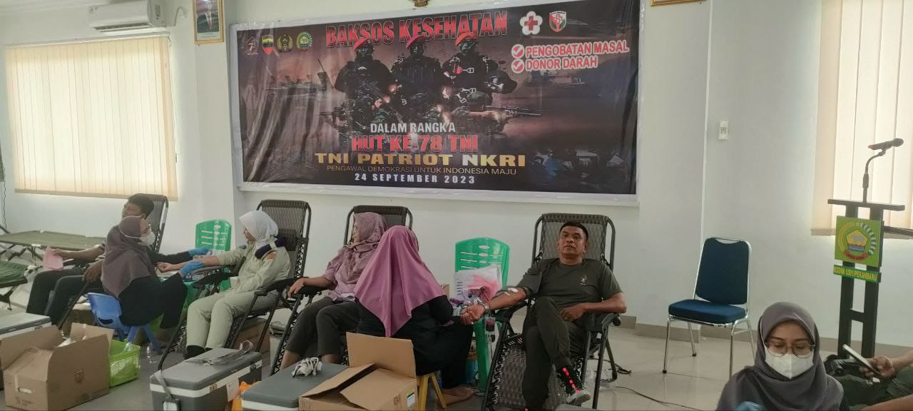 Dalam rangka menyambut Hari Ulang Tahun (HUT) TNI ke 78 tahun 2023, Kodim 0301/Pekanbaru telah melaksanakan kegiatan bakti sosial berupa donor darah yang diselenggarakan di aula Makodim Jalan Ahmad Yani Kelurahan Pulau Karomah Kecamatan.