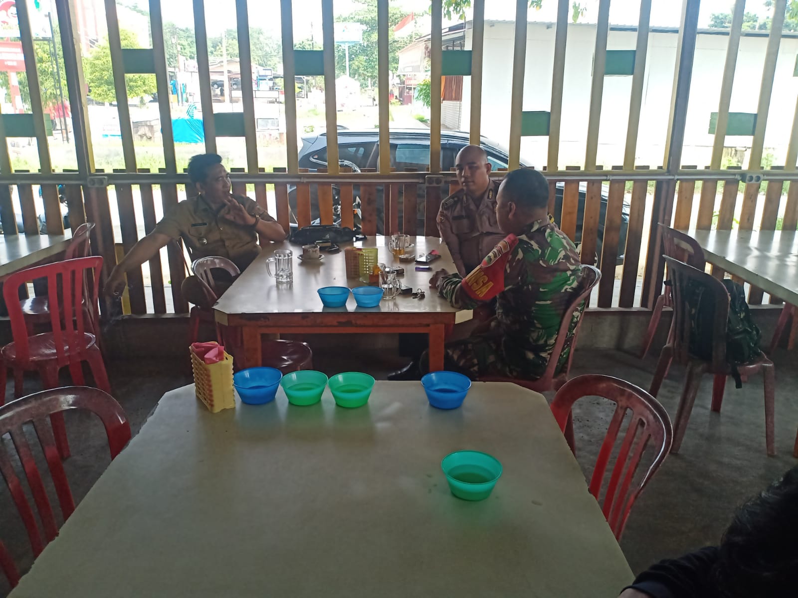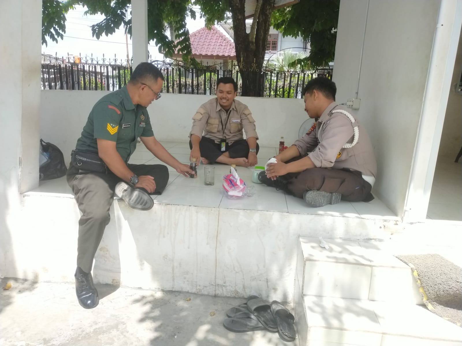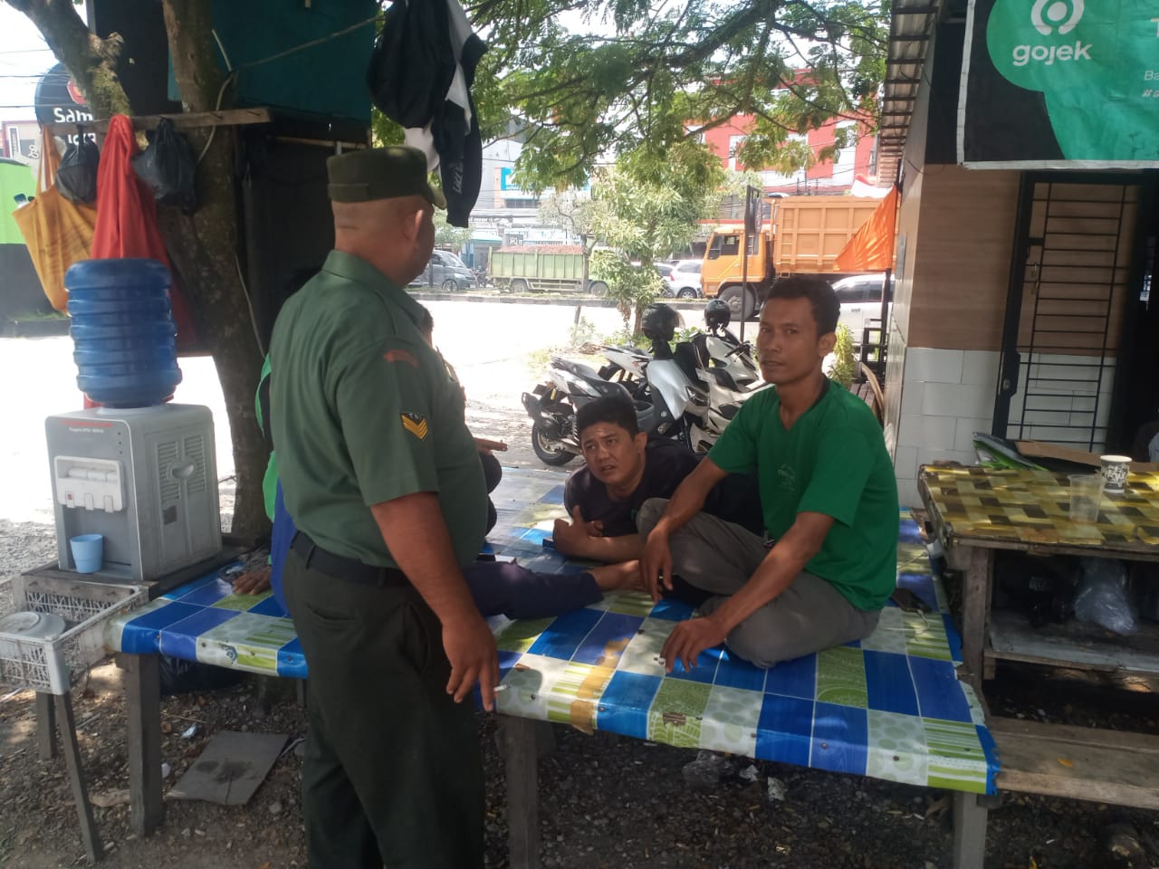 Melaksanakan komunikasi sosial yang rutin dilaksanakan, Babinsa Koramil 06/Sukajadi Kodim 0301/Pekanbaru, Serka Adeng memberikan pengarahan kepada Satpam Partagas di Kelurahan Kampung Melayu Kecamatan Sukajadi, Rabu.