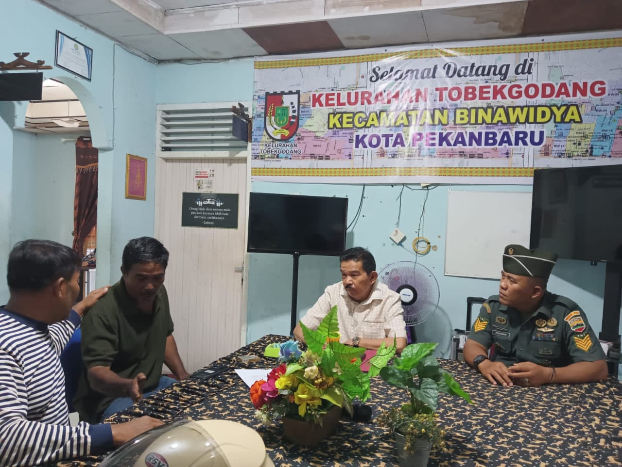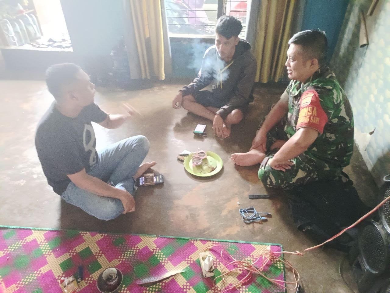 Babinsa Sertu Sutan Siregar Koramil 06/Sukajadi Kodim 0301/Pekanbaru melaksanakan Komsos dengan Amrizal di kediamannya Jalan Teratai Kelurahan Sukajadi Kecamatan Sukajadi, Selasa.