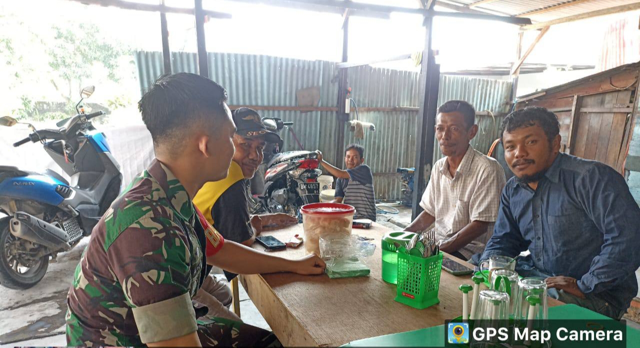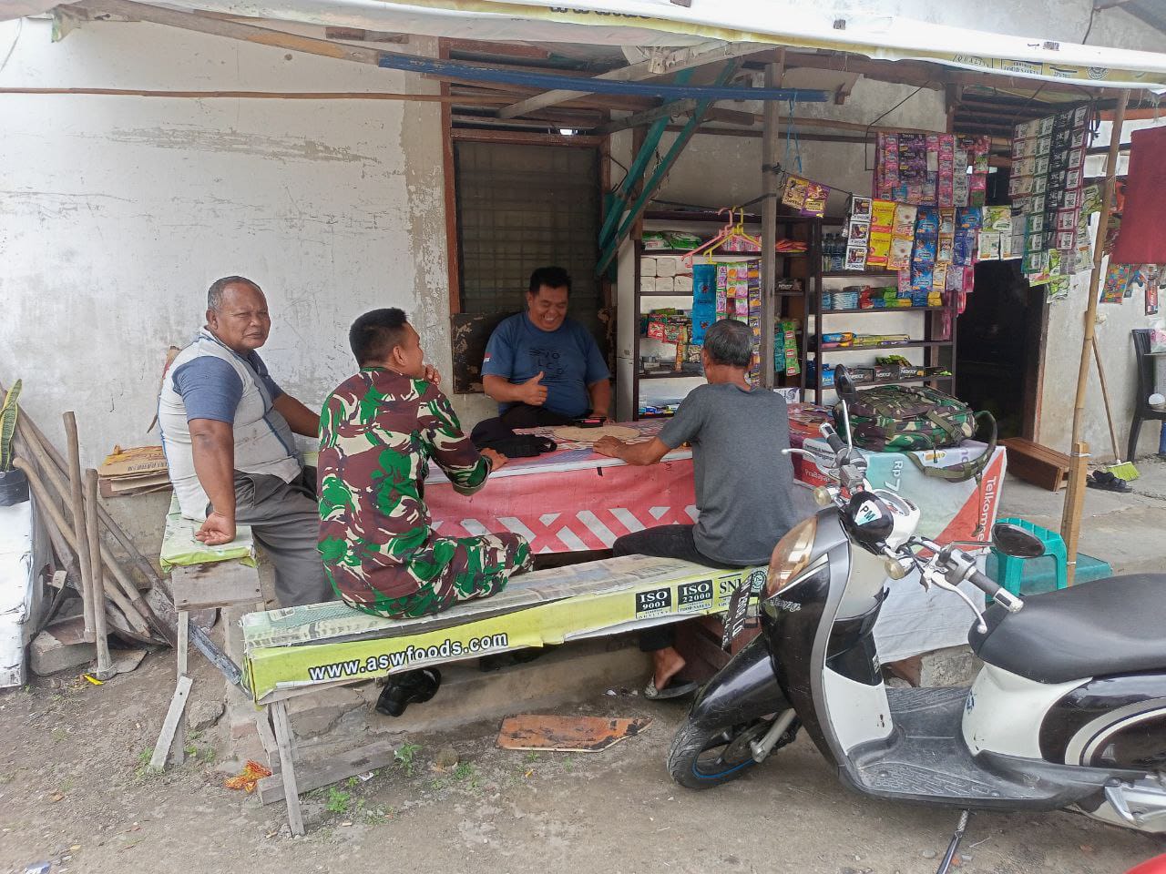 Babinsa Koramil 06/Sukajadi Kodim 0301/Pbr, Serda Yasir Anhar melaksanakan kegiatan Komsos di Kedai kopi Eed di Gang Kancil RT 03 RW 06 Kelurahan Harjosari Kecamatan Sukajadi, Jumat.