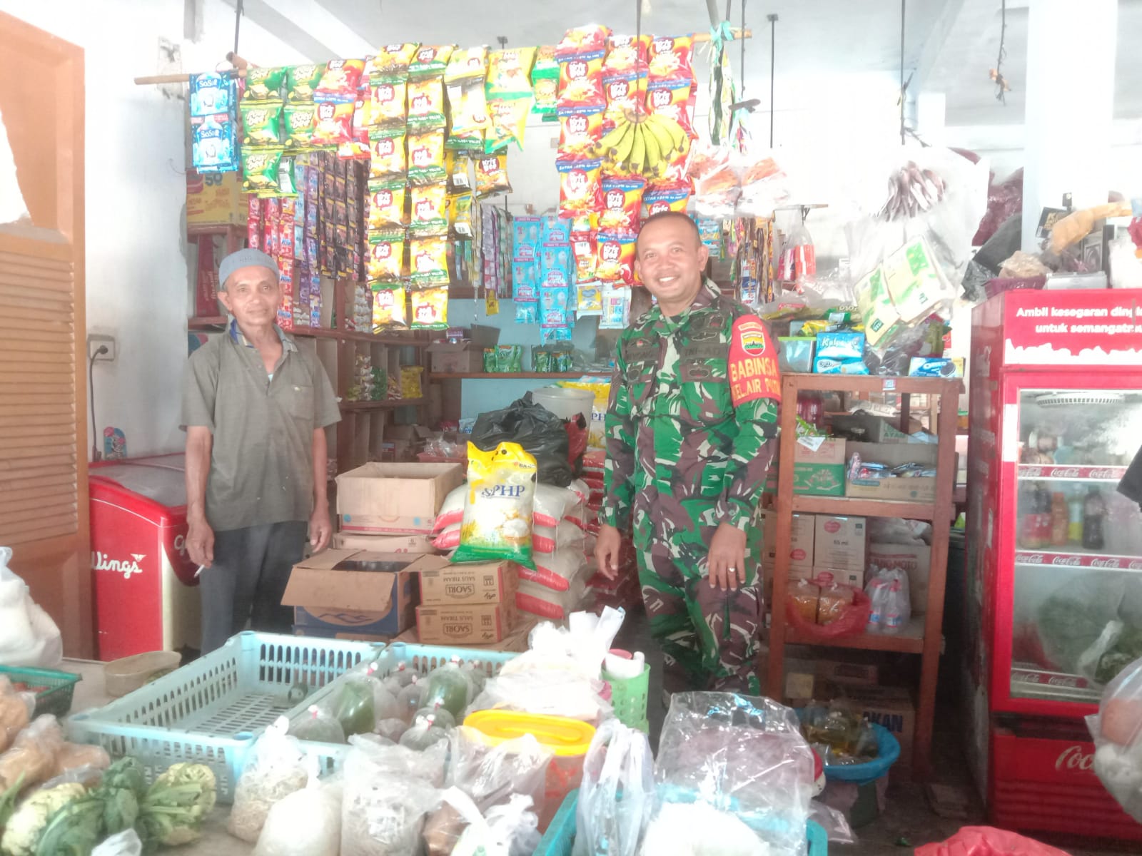 Babinsa Kelurahan Air Putih Koramil 06/Sukajadi Kodim 0301/Pekanbaru, Sertu Wiyono, Minggu (10/09/2023) turun langsung kewilayah binaan guna mengecek ketersediaan harga sembilan bahan.