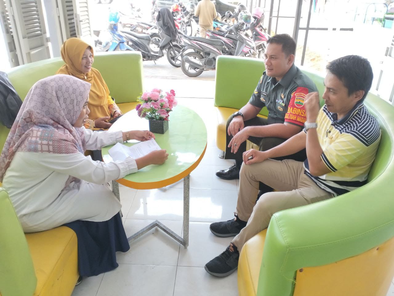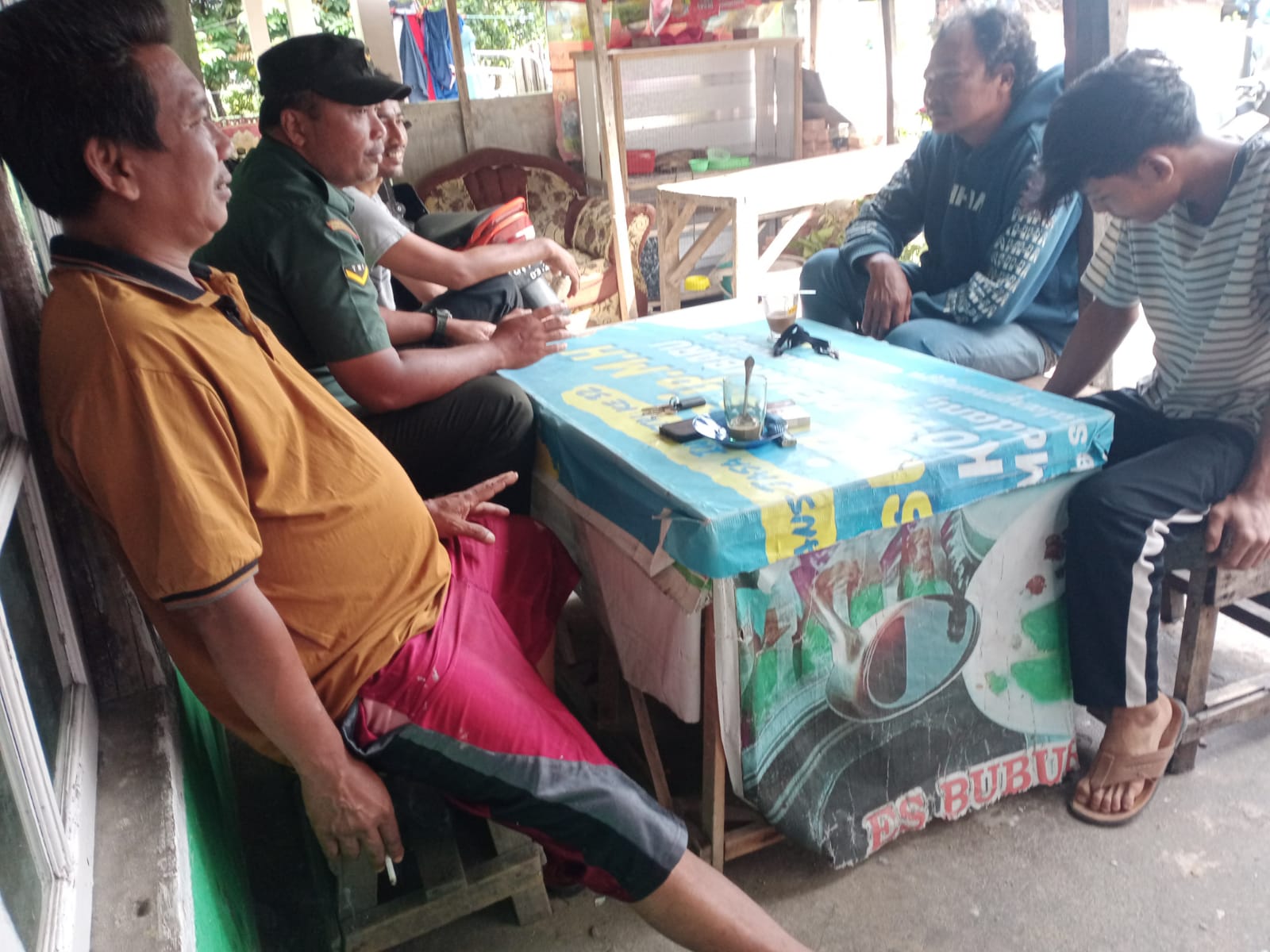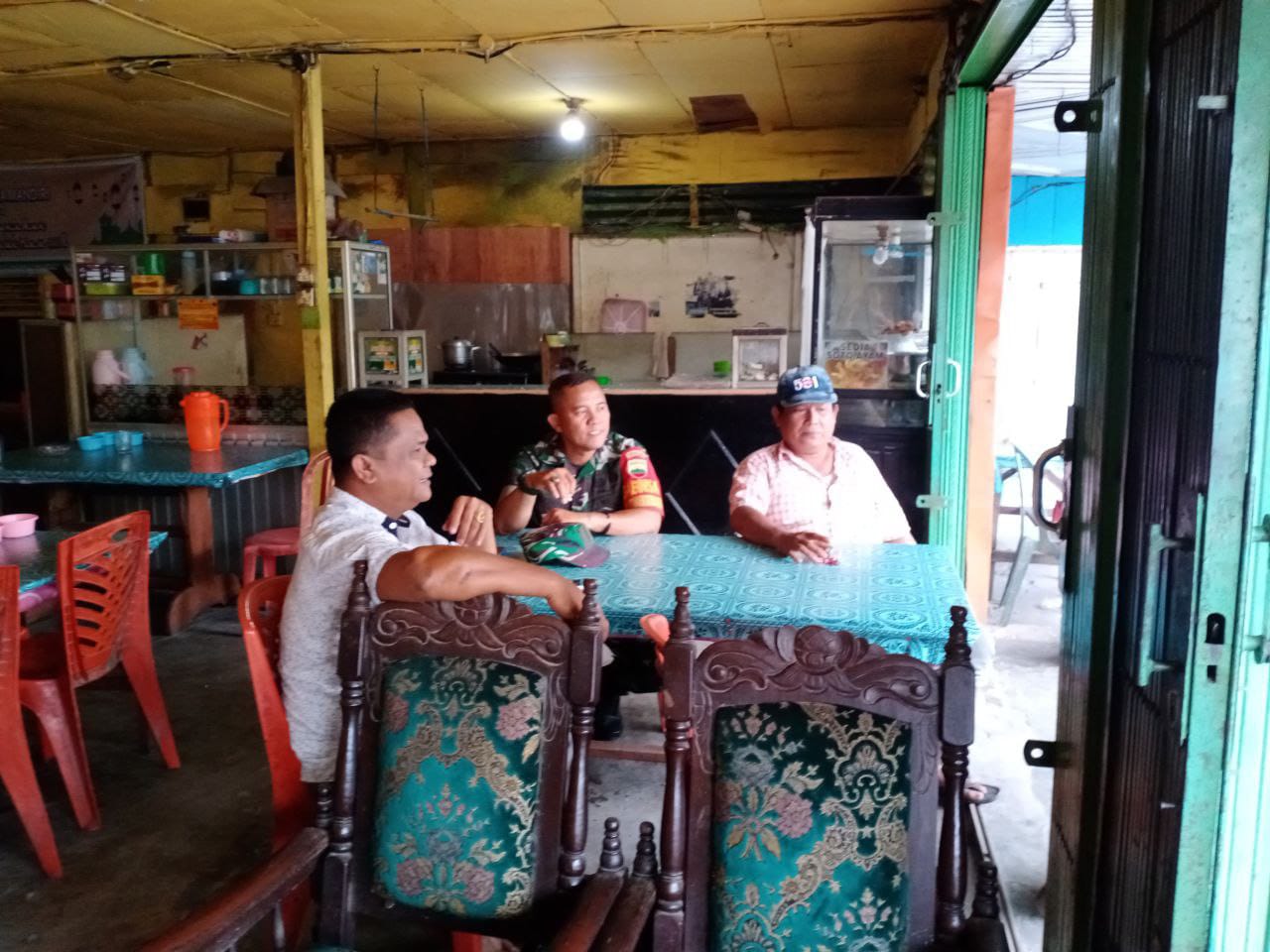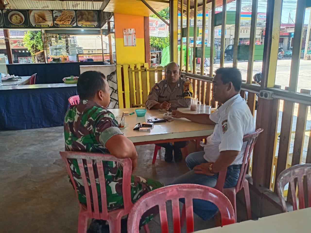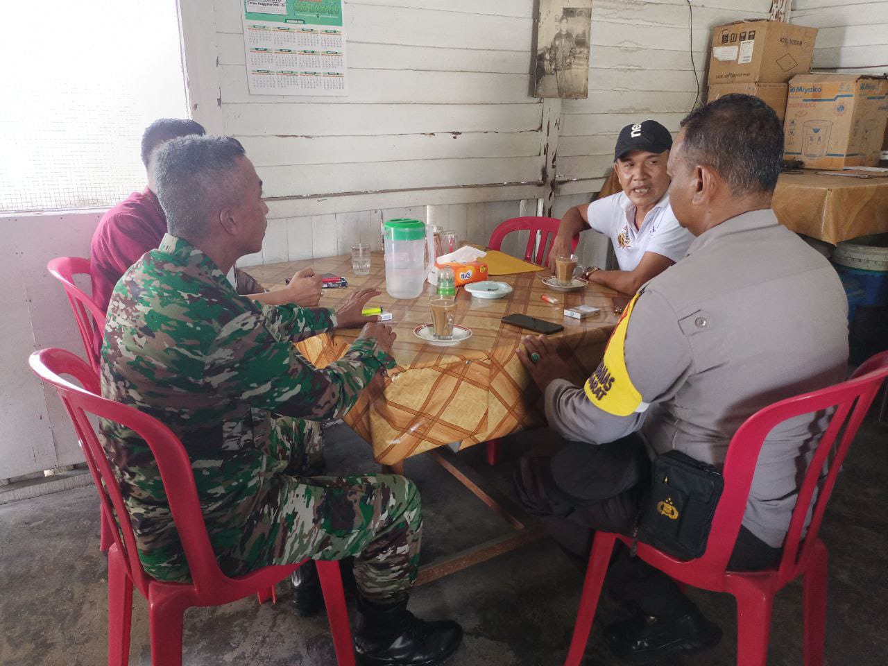 Saling kompak dan bersinergi, tiga pilar kelurahan Sei Sibam berkumpul dan senda gurau disalah satu kedai kopi Jalan Beringin Kecamatan Tuah Madani, Pekanbaru, Jumat.