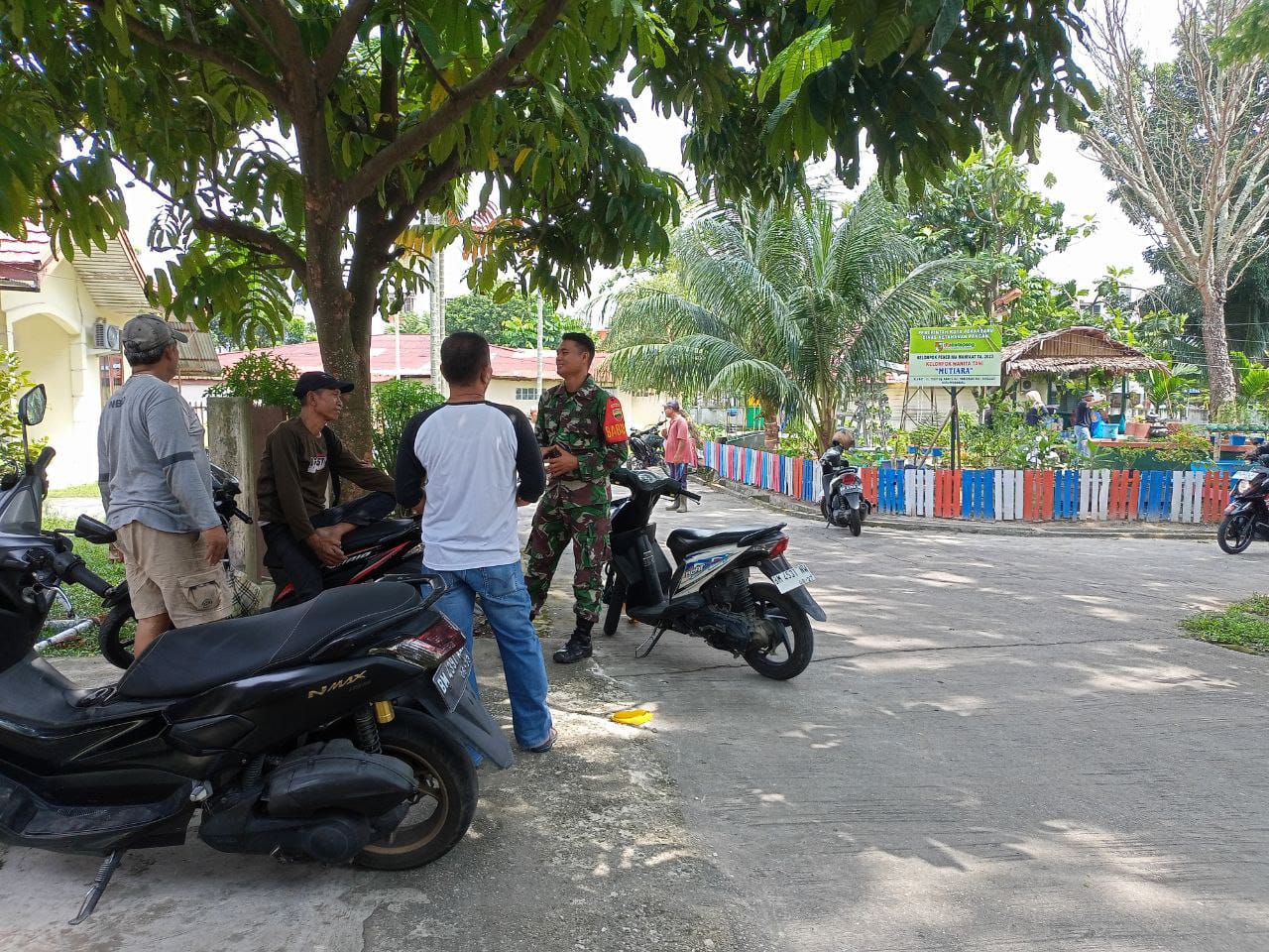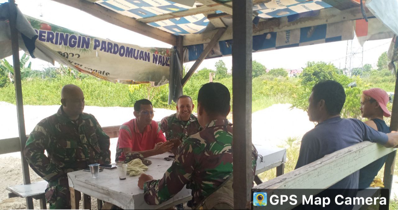 Babinsa Koramil 06/Sukajadi Kodim 0301/Pekanbaru, Serda GK Sinaga melaksanakan komunikasi sosial kepada tokoh masyarakat dan warga Jalan Beringin Air Hitam Kelurahan Sei Sibam Kecamatan Binawidya, Kamis.