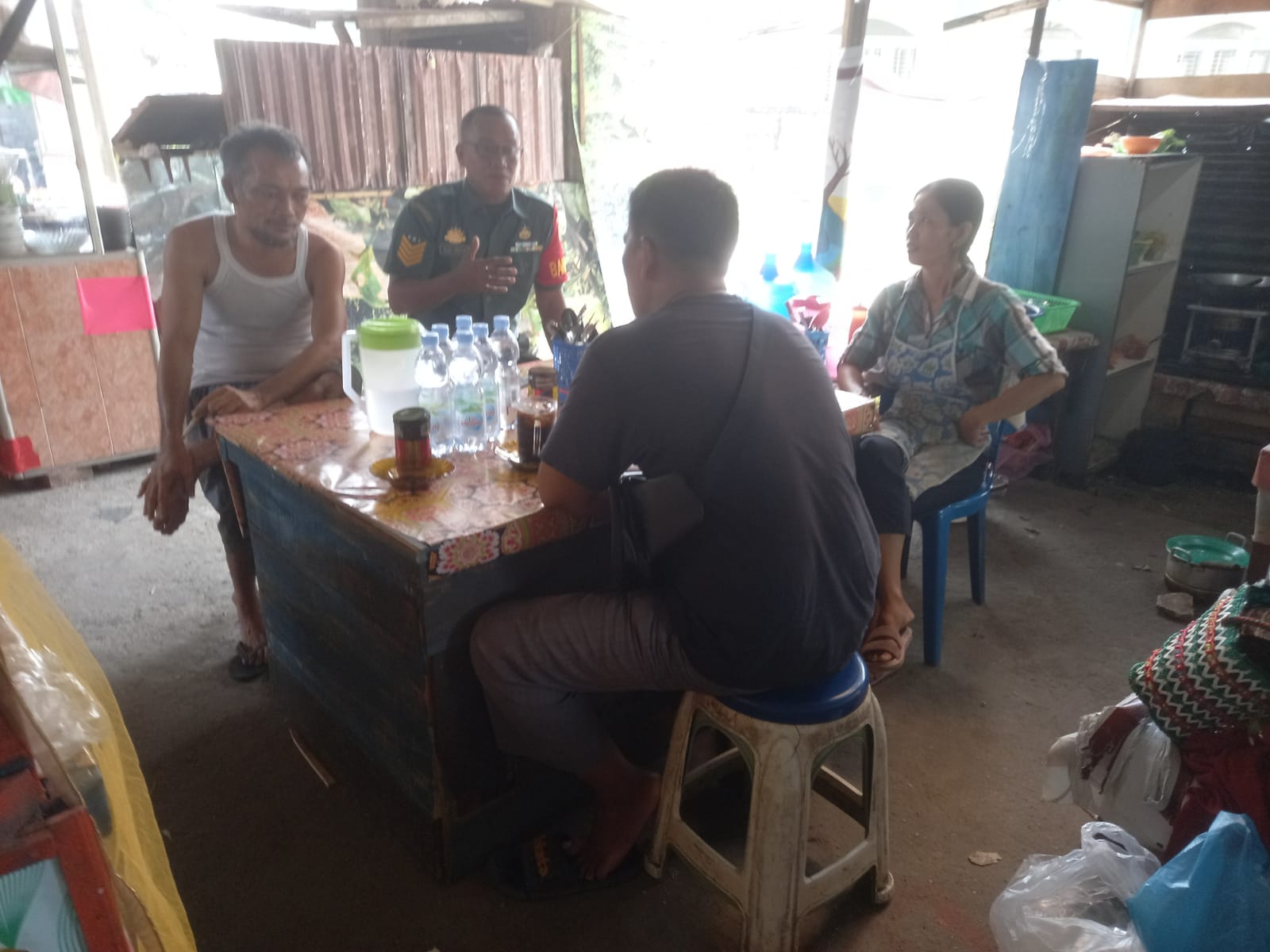 Menjaga hubungan yang lebih baik, Anggota TNI AD jajaran Koramil 06/Sukajadi melaksanakan komunikasi sosial dengan warga.