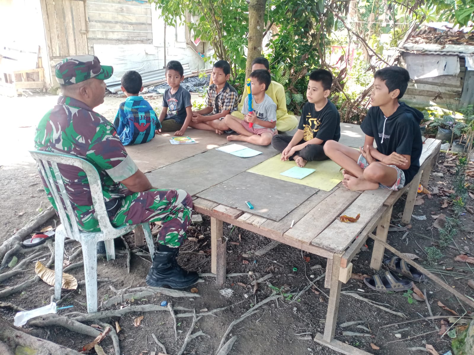 Babinsa Simpang Baru Dukung Memajukan Pendidikan di Kampung.