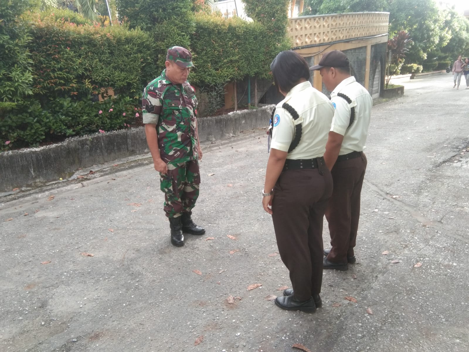 Babinsa Koramil 06/Sukajadi Kodim 0301/Pekanbaru, Sertu Parjo melaksanakan komunikasi sosial dengan staf GIGS UPT Pekanbaru di Jalan Samsul Bahri Kelurahan Sungai Sibam Kecamatan Binawidya,.