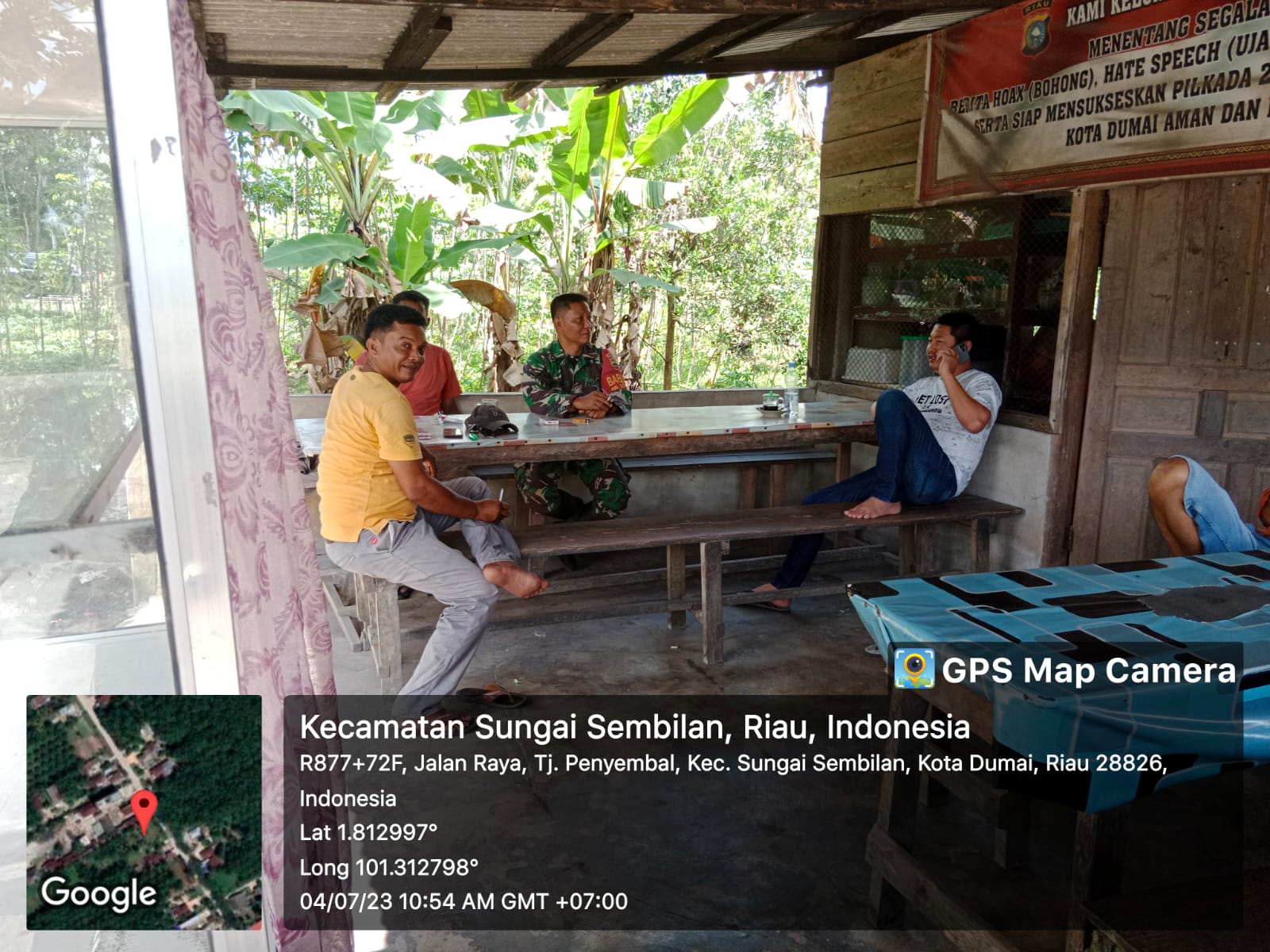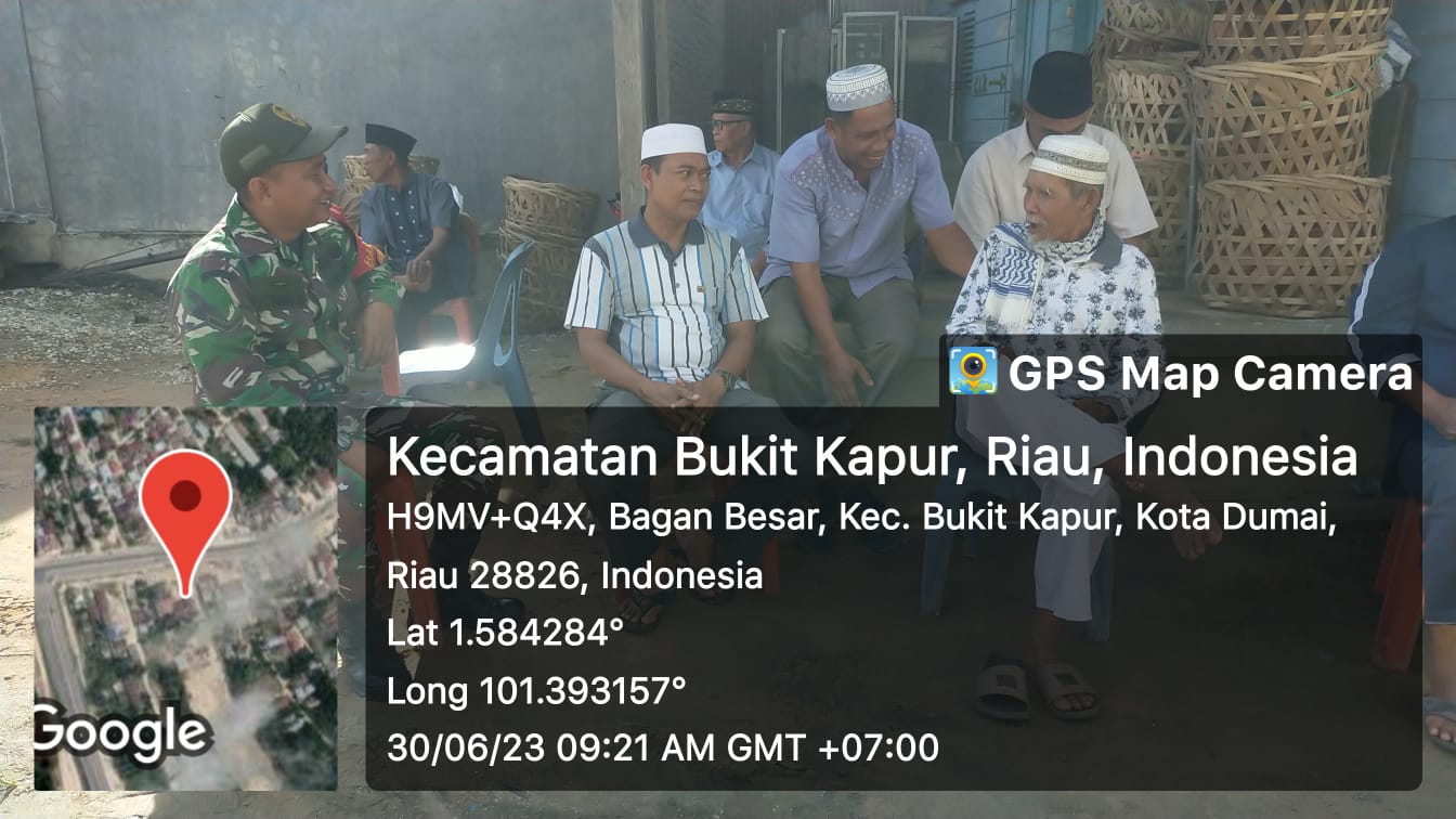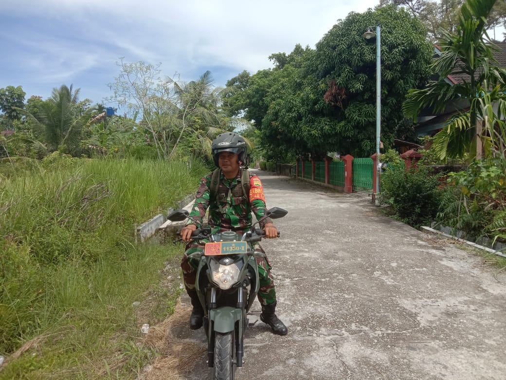 Babinsa Kodim 0320/Dumai, Serda Bambang Irwanto melaksanakan kegiatan Komsos dengan masyarakat Jalan Raya Kelurahan Tanjung Penyembal Kecamatan Sungai Sembilan, Selasa.